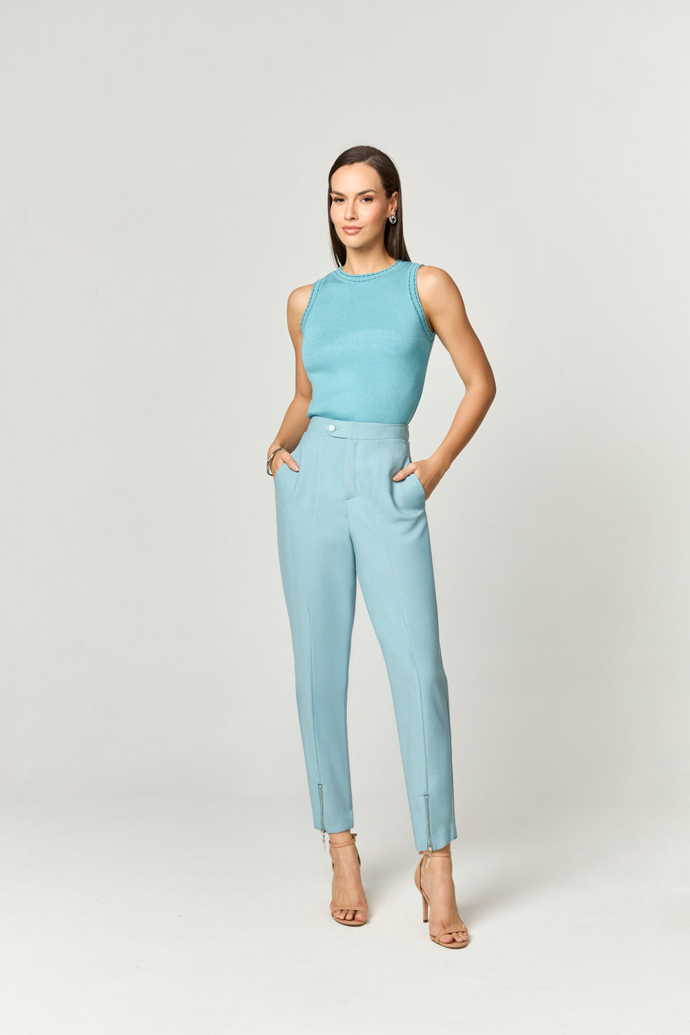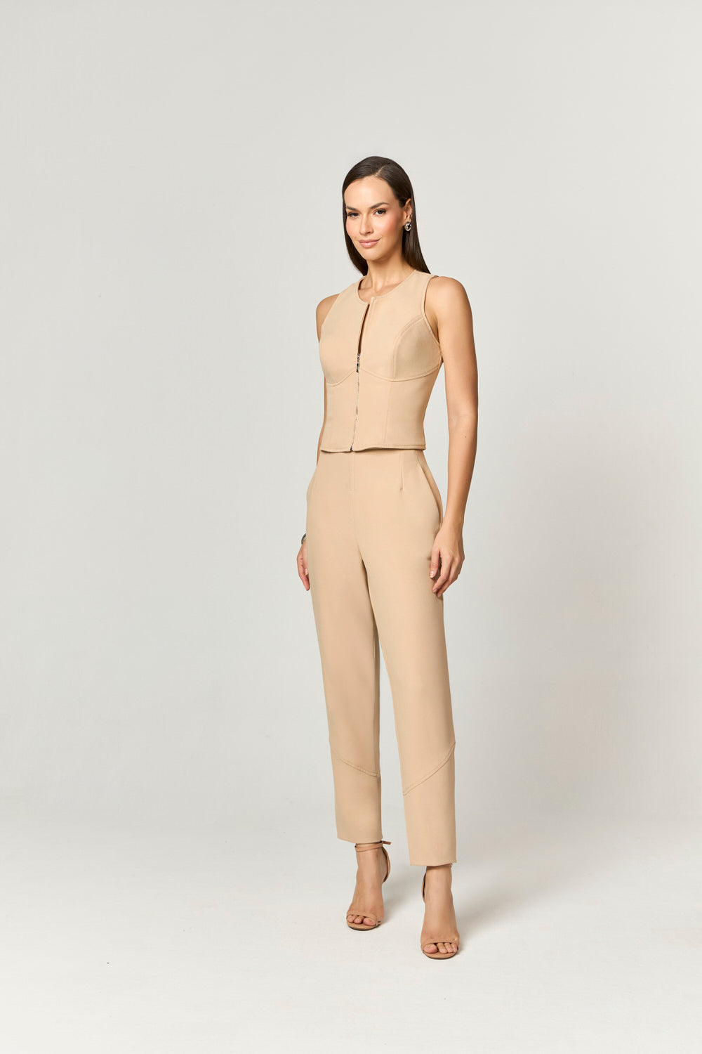 CONJUNTO CALCA E BLUSA ALFAIATARIA DETALHE PESPONTOS