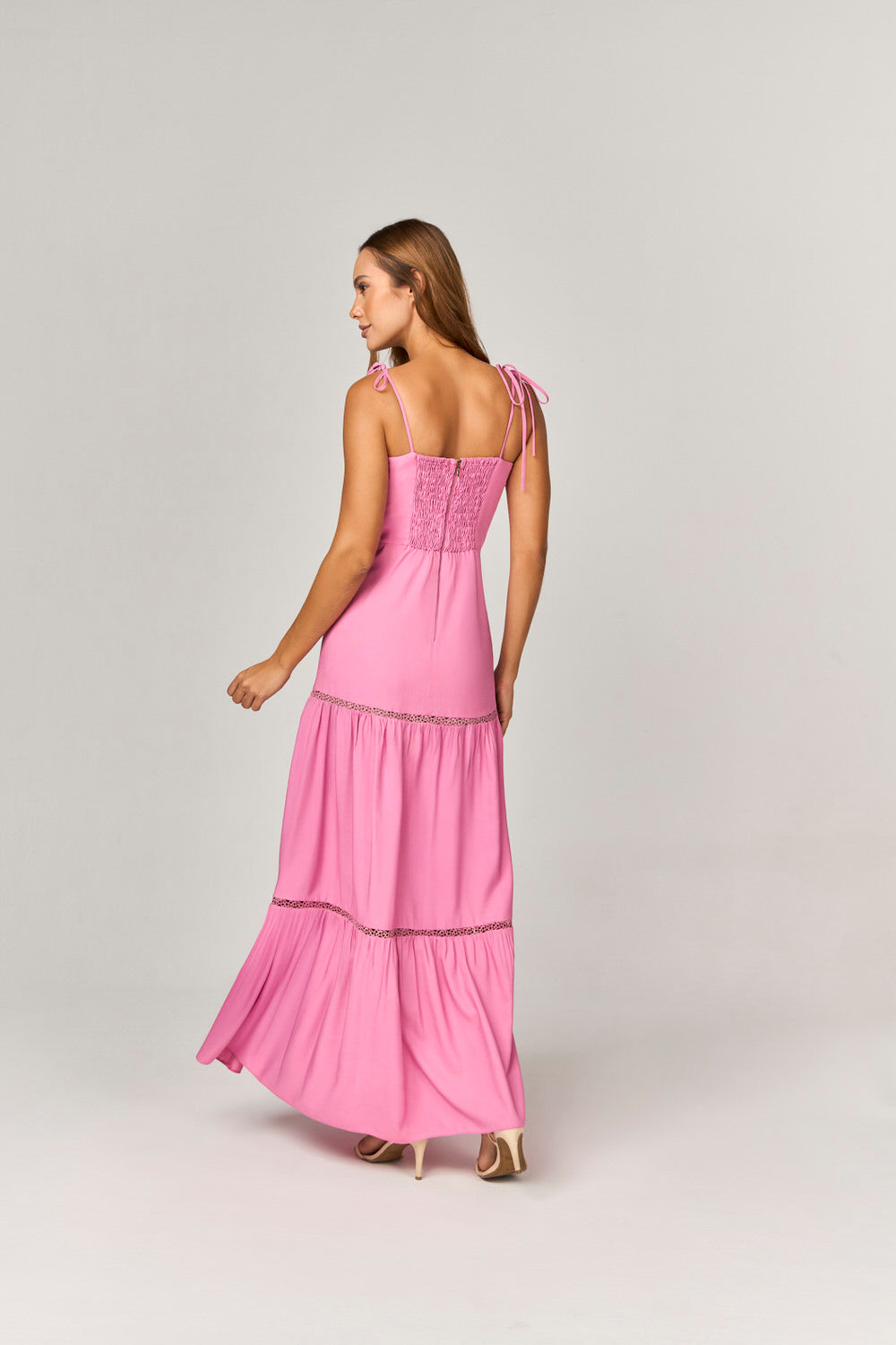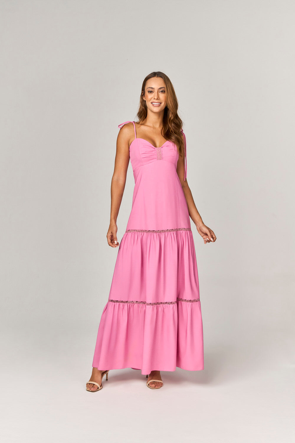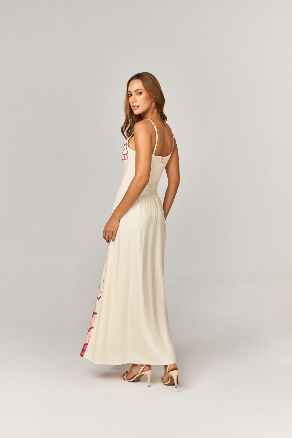 VESTIDO MIDI COM PESPONTO BUSTO E APLICACAO