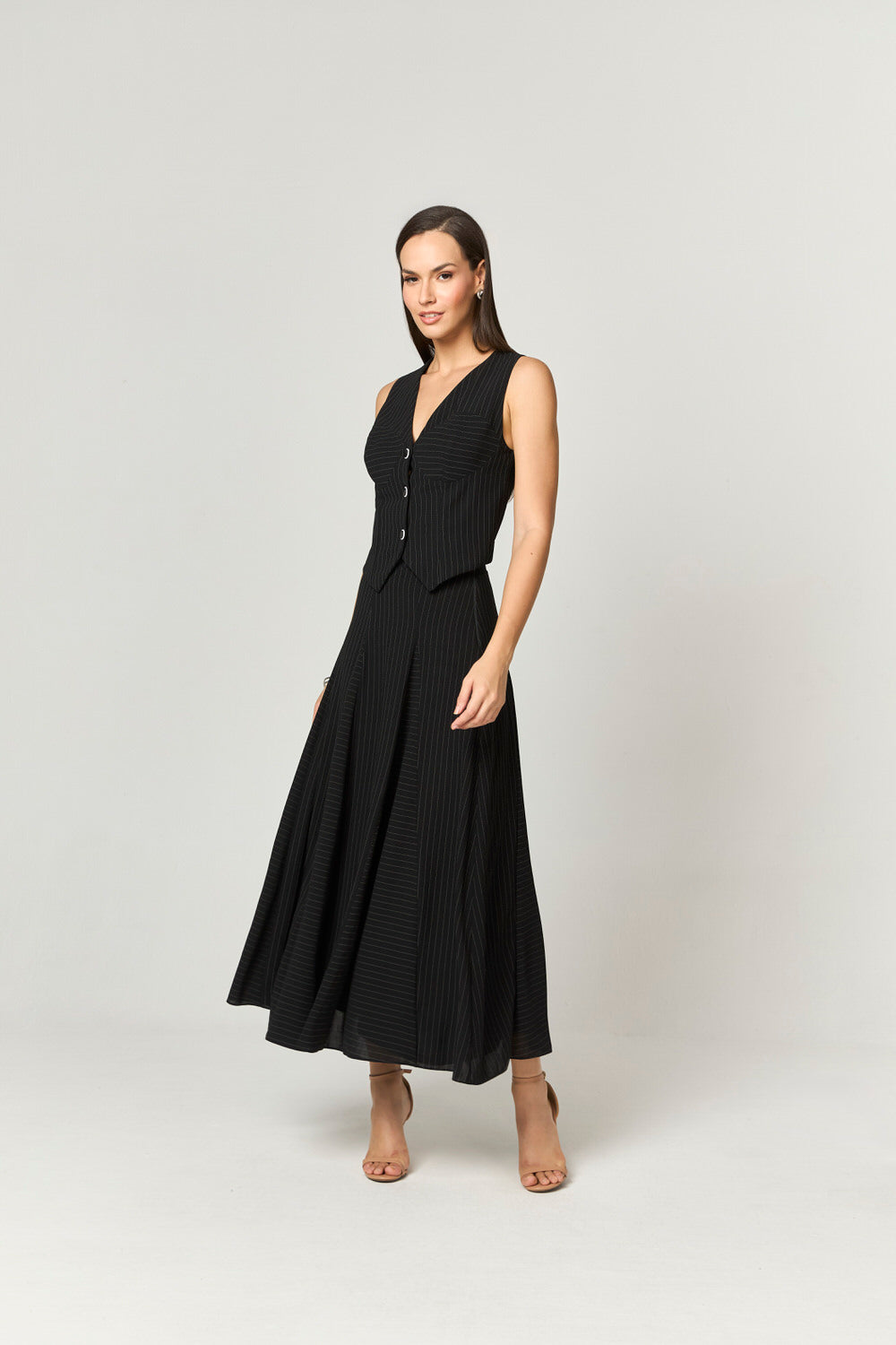 CONJUNTO SAIA E BLUSA RISCA DE GIZ COM NESGAS
