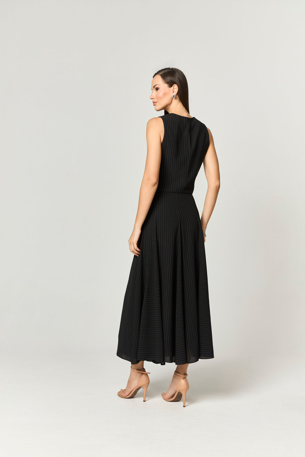 VESTIDO MIDI DE LISTRAS COM DETALHE EM COURO