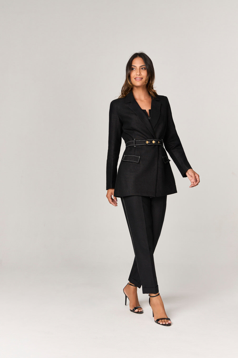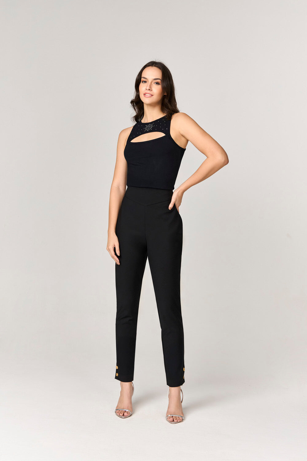 CALCA ALFAIATARIA COM DETALHE BOTOES NA BARRA