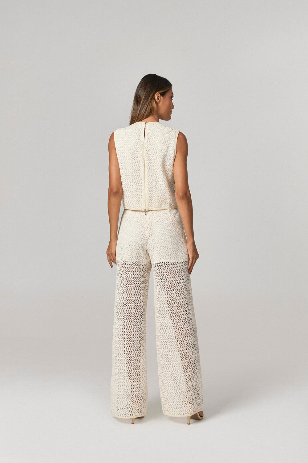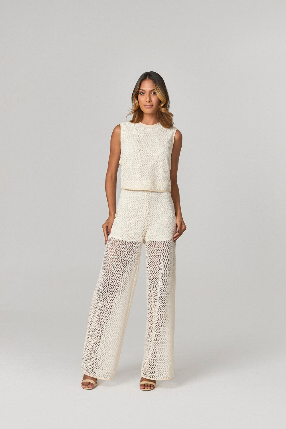 CONJUNTO CALCA E BLUSA CROCHET DETALHE BOTOES