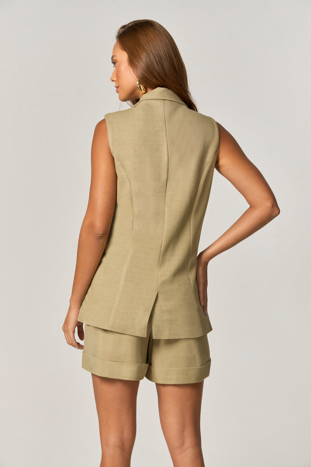 CONJUNTO SHORT E COLETE ALONGADO E DETALHE CINTO