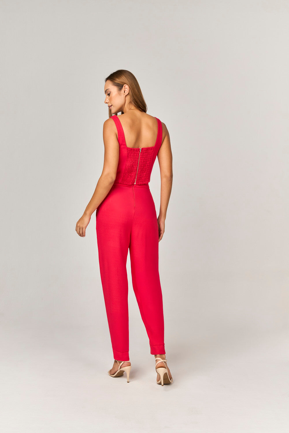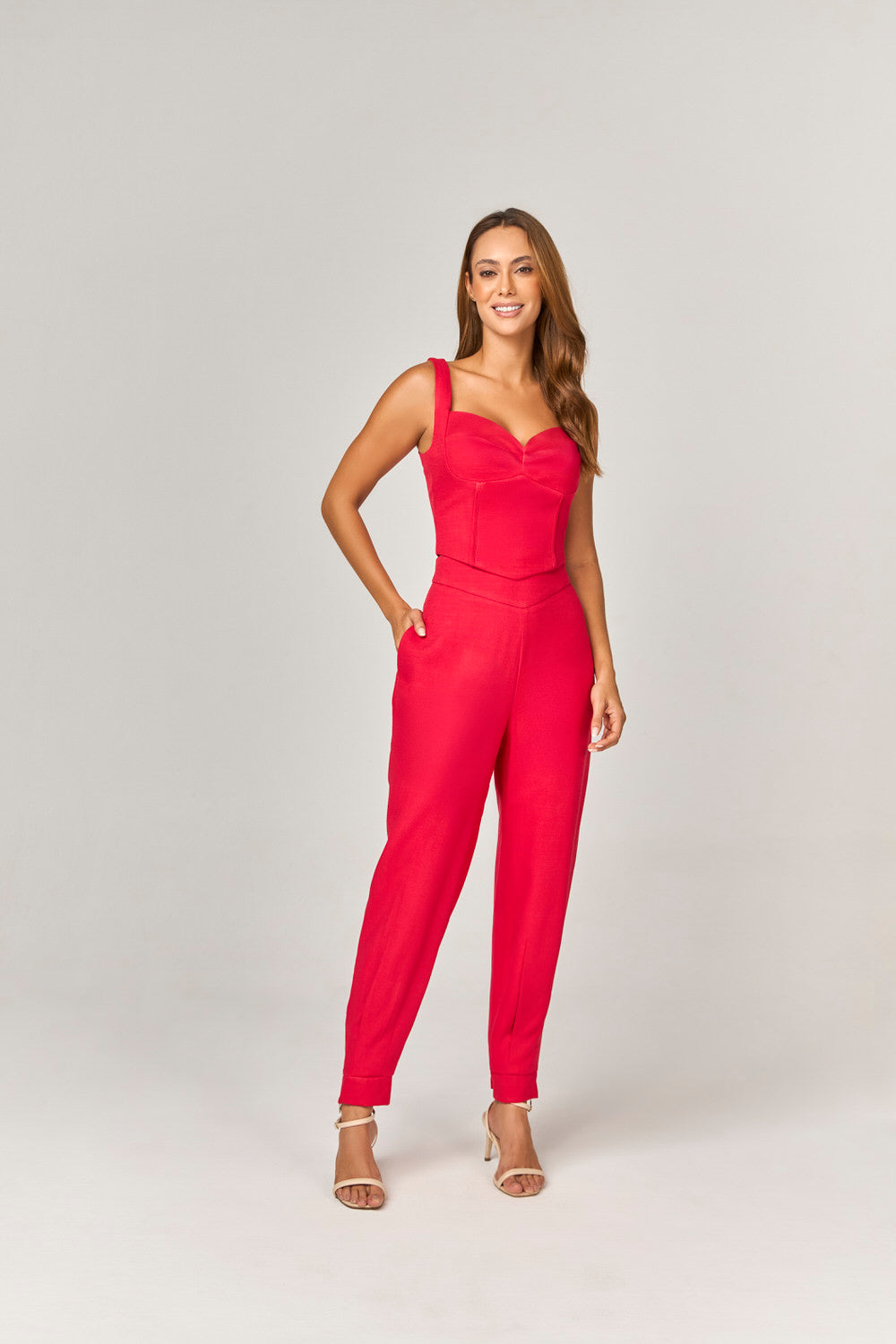 A calça, com modelagem aladim, confere movimento e leveza ao conjunto, tornando-o ideal para variadas ocasiões. Os bolsos laterais funcionais não apenas adicionam um toque de estilo, mas também oferecem praticidade. O detalhe na barra com zíper funcional traz um elemento de design que evidencia a modernidade da peça. Elaborada em 100% viscose, esta combinação proporciona conforto e elegância, sendo perfeita para compor looks distintos com sofisticação.