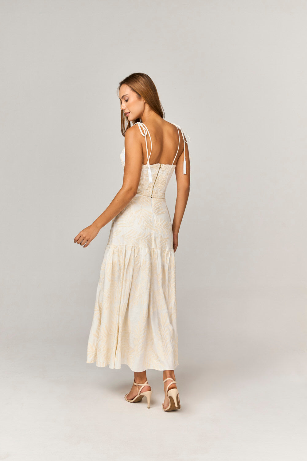 O Conjunto Saia Midi e Cropped com Detalhe Recortes é a escolha ideal para aquelas que buscam um visual sofisticado e elegante. Com um design que combina um cropped de decote coração e alças finas para amarração, este conjunto proporciona um toque de finesse. O corte estratégico nas costas e o ziper permitem um ajuste perfeito, enquanto o lastex nas costas oferece conforto sem abrir mão da estética.