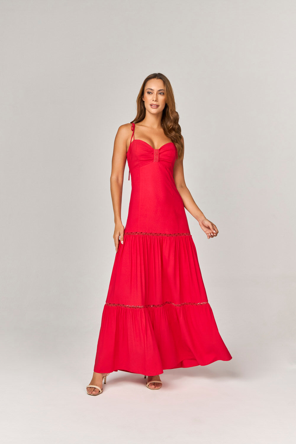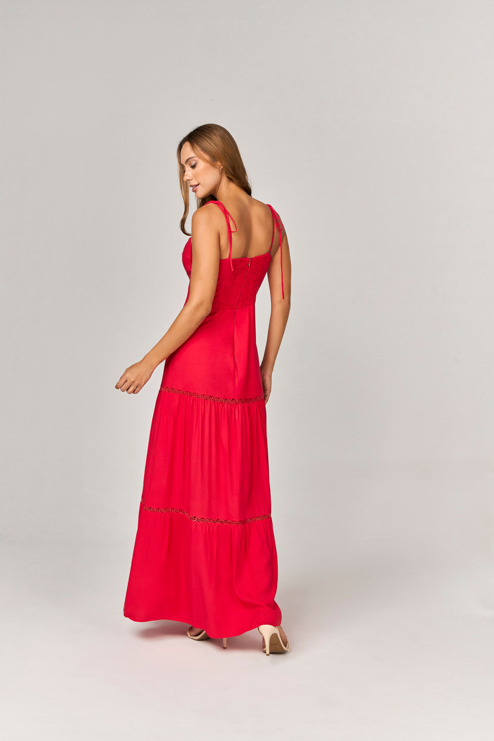 Confeccionado com uma mistura premium de 80% viscose e 20% linho, este vestido demonstra qualidade e conforto, permitindo liberdade de movimentos. As alças finas de amarração e o lastex na costa garantem um ajuste perfeito ao corpo, enquanto o fechamento nas costas com zíper assegura praticidade e um acabamento impecável. Este vestido é uma escolha certeira para quem busca se destacar com estilo e classe.