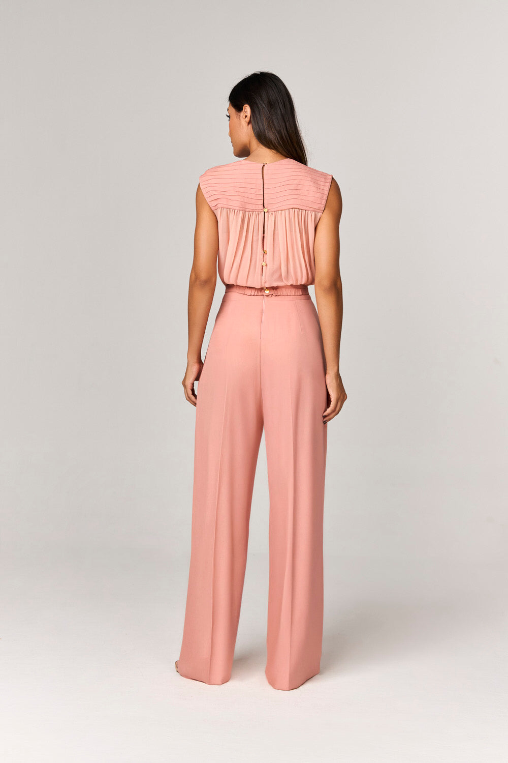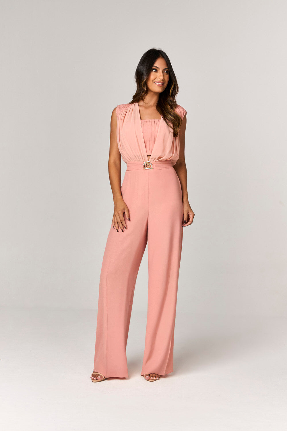 Descubra a elegância contemporânea do nosso macacão pantalona com nervuras, uma peça essencial para a mulher que busca sofisticação e estilo em qualquer ocasião. Com seu comprimento longo e decote V profundo, este macacão realça a silhueta feminina com um toque de charme e modernidade. A modelagem ampla proporciona conforto e liberdade de movimento, enquanto os bolsos laterais adicionam um elemento prático e chic. O fechamento com zíper lateral garante um ajuste perfeito, enquanto o cinto e o top que acompanham complementam a produção de forma harmoniosa e elegante.