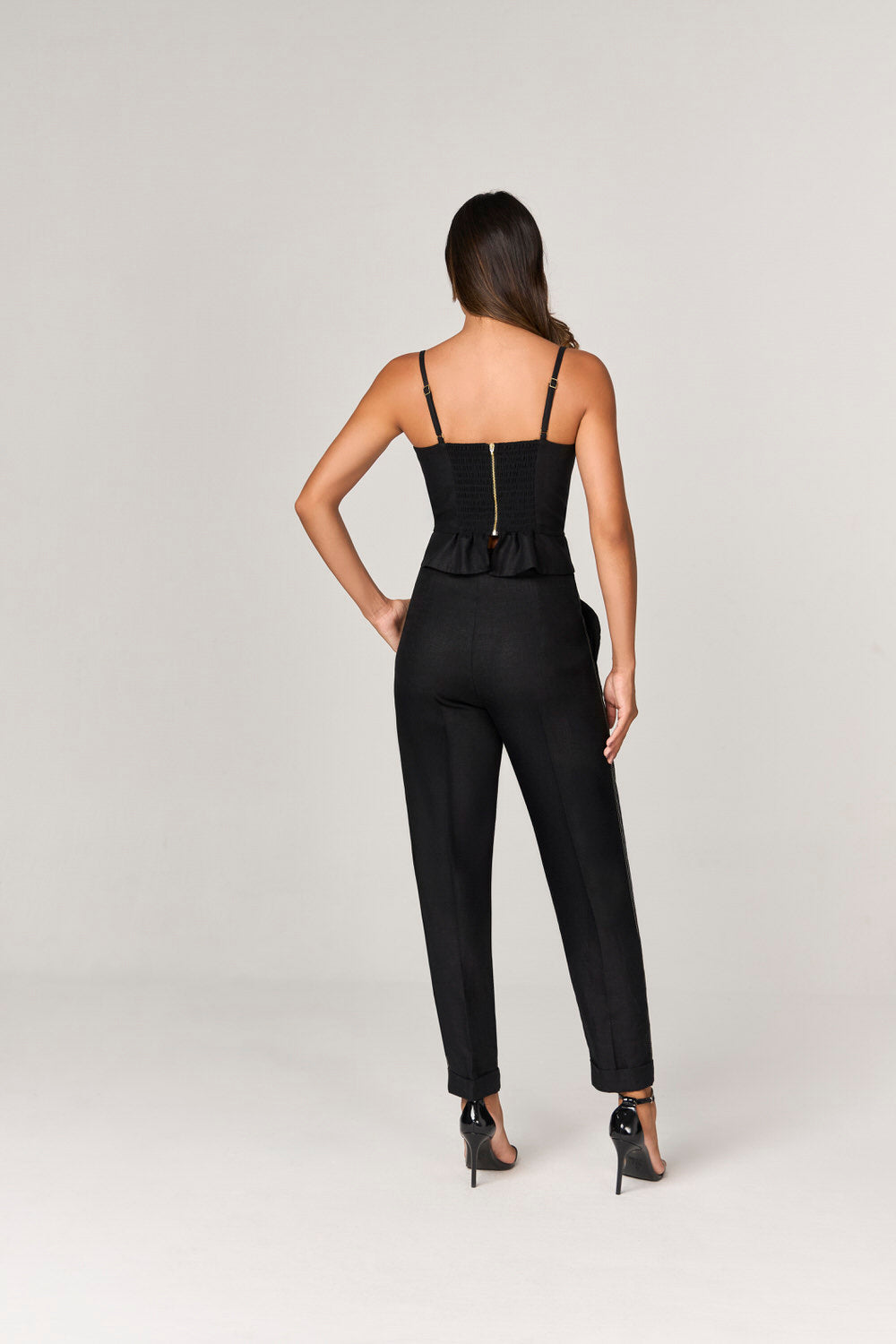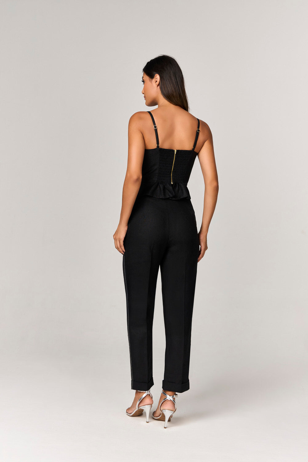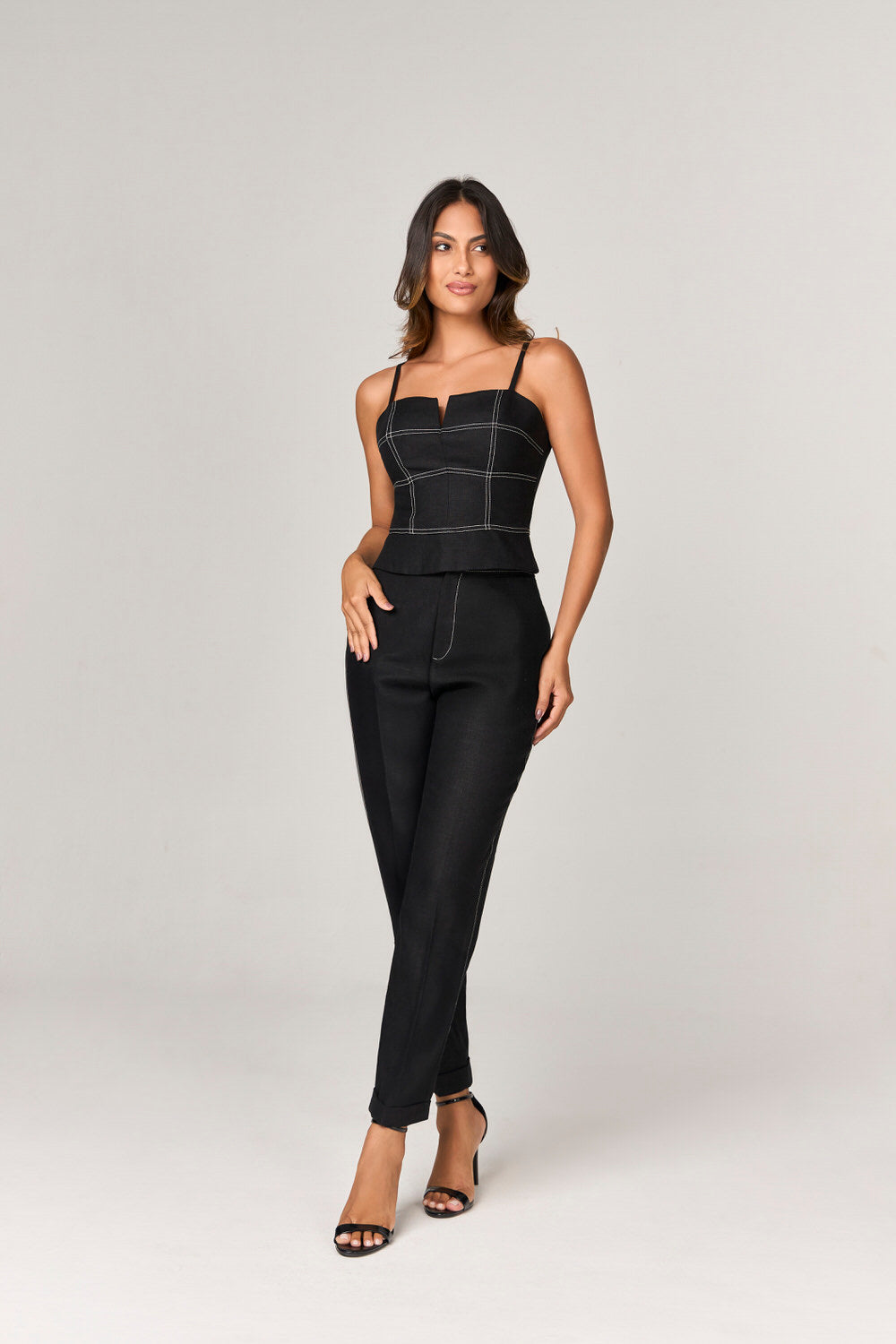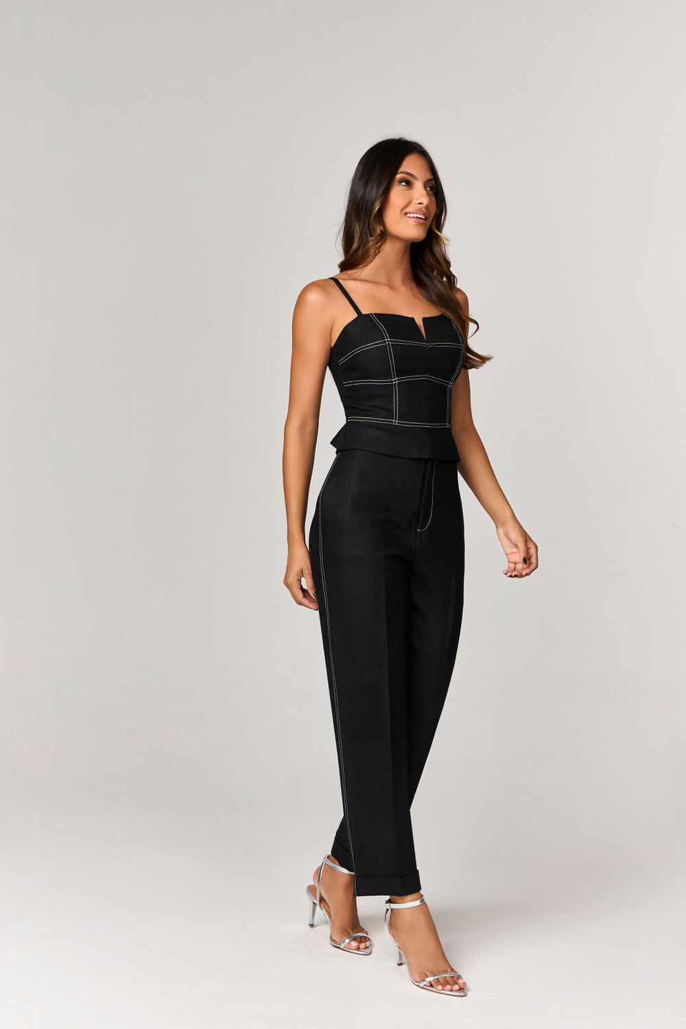 A BLUSA DE LINHO COM DETALHE PESPONTOS é a peça ideal para quem busca unir elegância e conforto em um só look. Com um comprimento médio e uma modelagem ajustada, esta blusa valoriza a silhueta feminina de maneira sofisticada. Seu decote leve coração proporciona um toque delicado, enquanto as alças finas com regulador garantem um ajuste perfeito. O lastex nas costas e o fechamento com zíper destacável evidenciam a praticidade sem abrir mão do estilo.