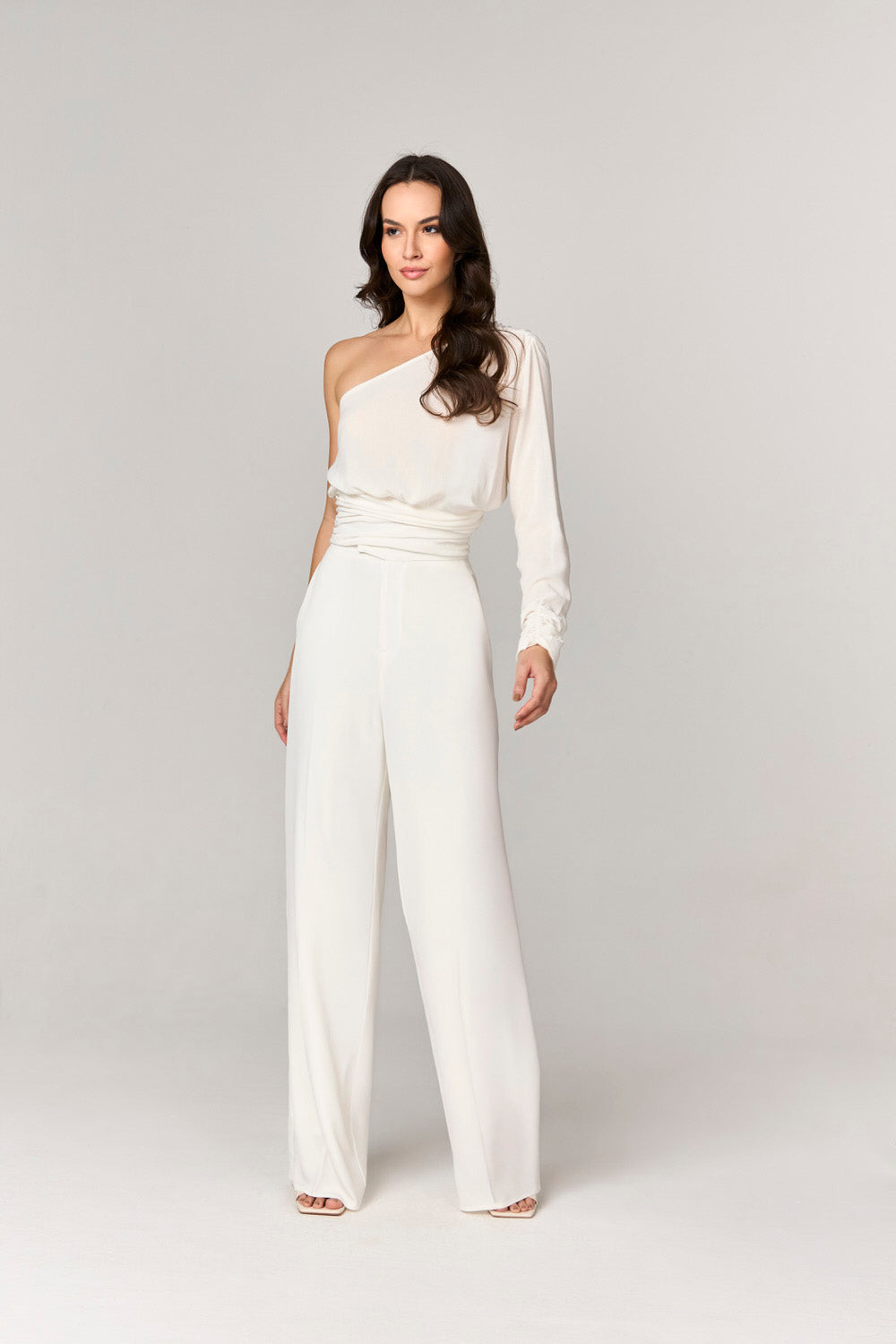 BLUSA COM OMBRO SO E DETALHE FRANZIDOS