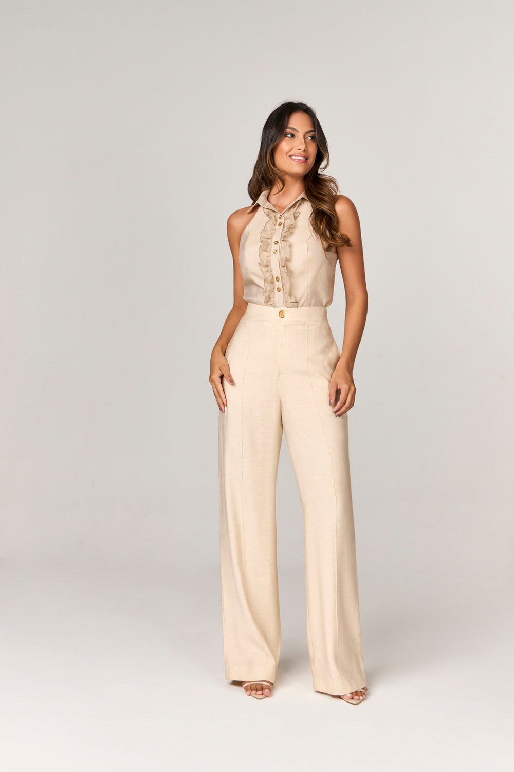 BLUSA COM BABADOS E BOTOES MOEDA