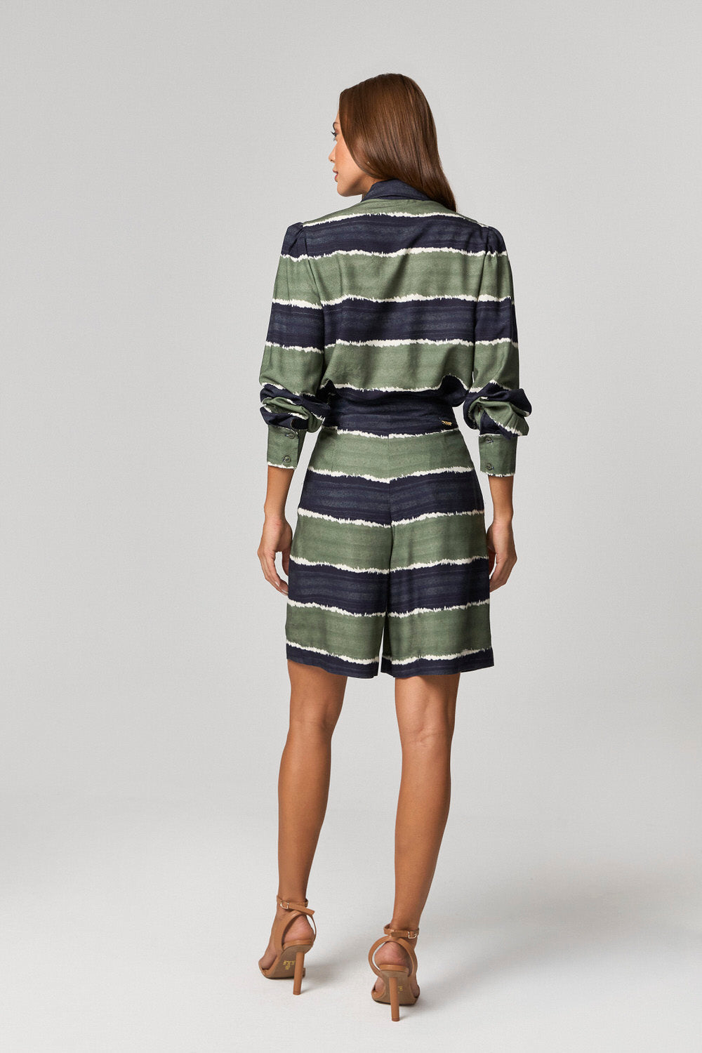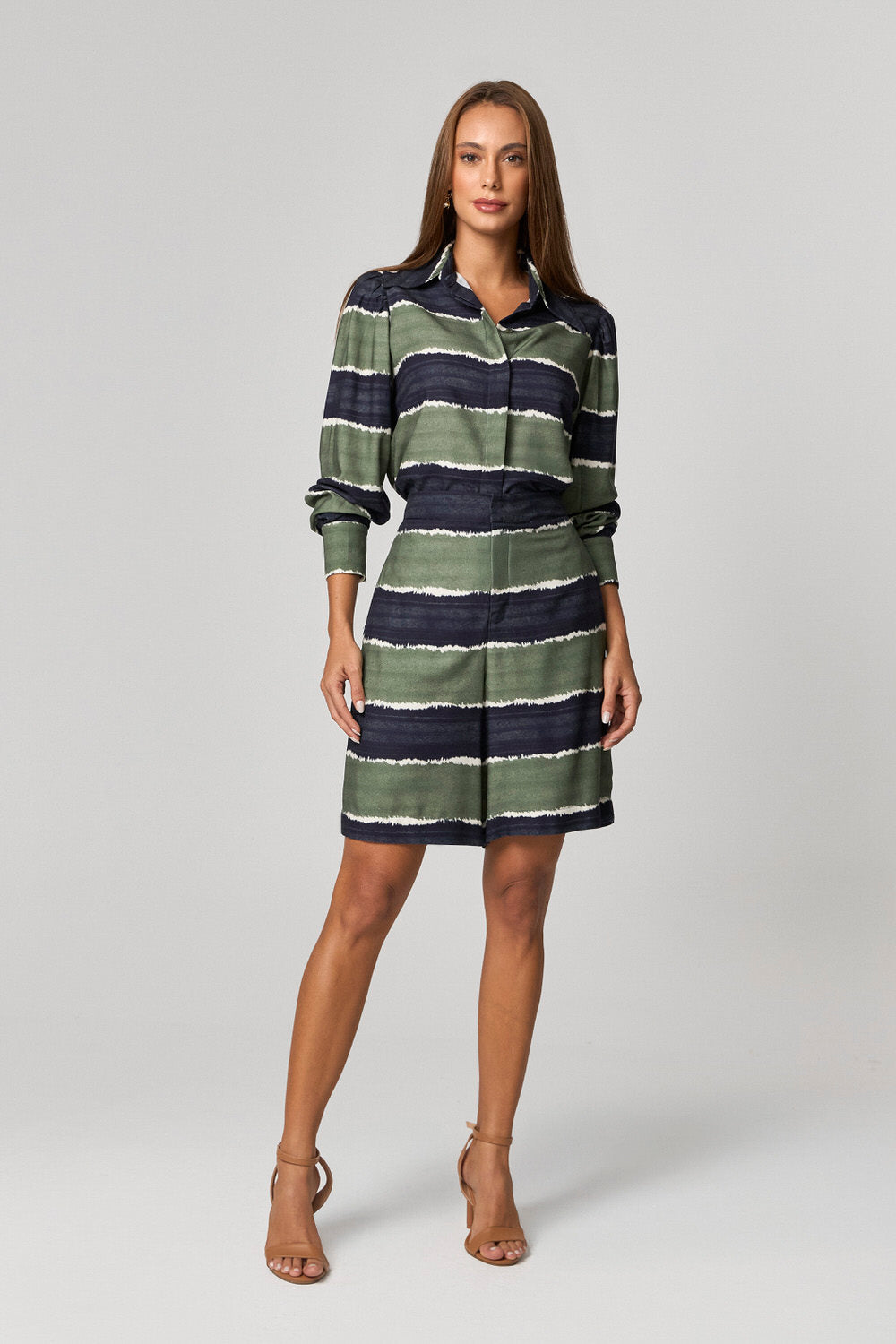 BLUSA CAMISA ESTAMPADA COM BARRADO