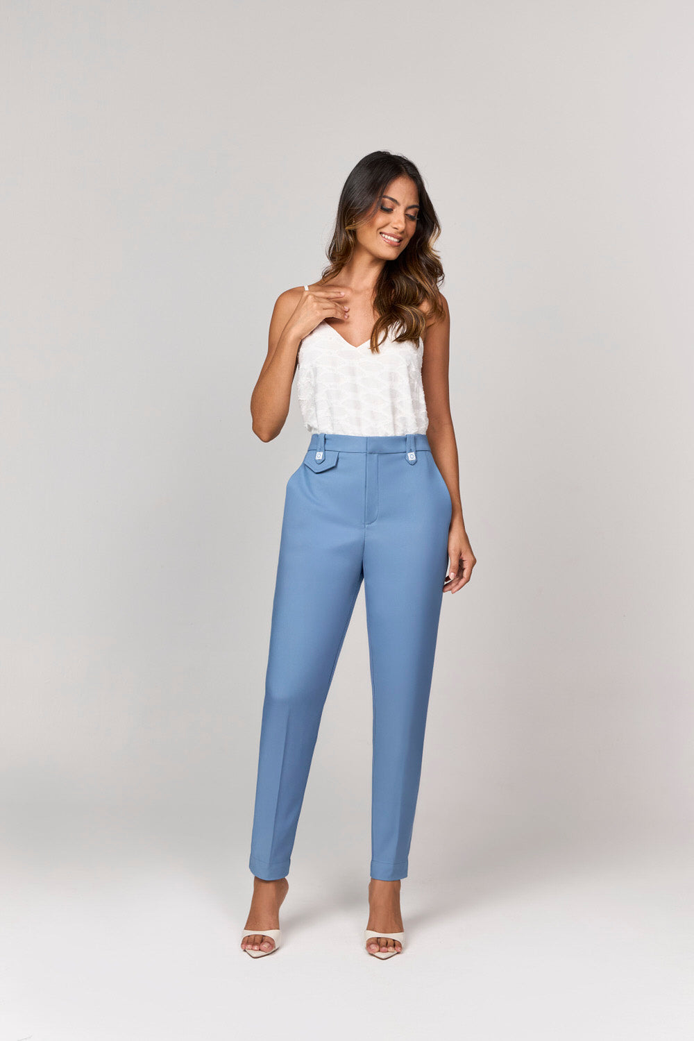 BLUSA REGATA COM FIVELA DE CONCHA