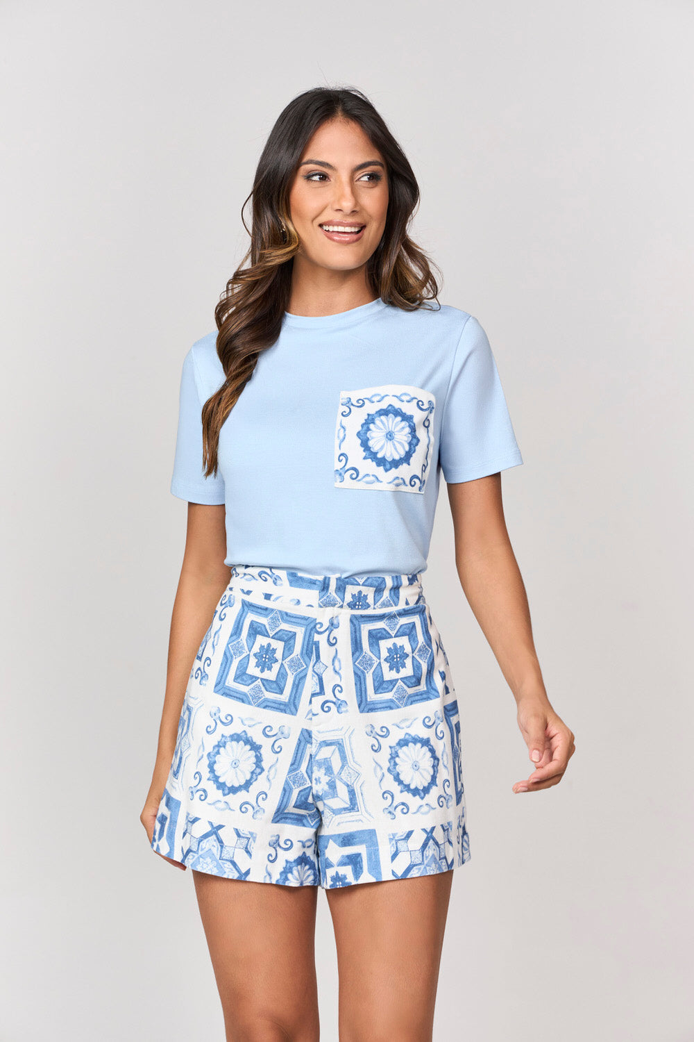 SHORT ESTAMPADO COM AZULEJOS