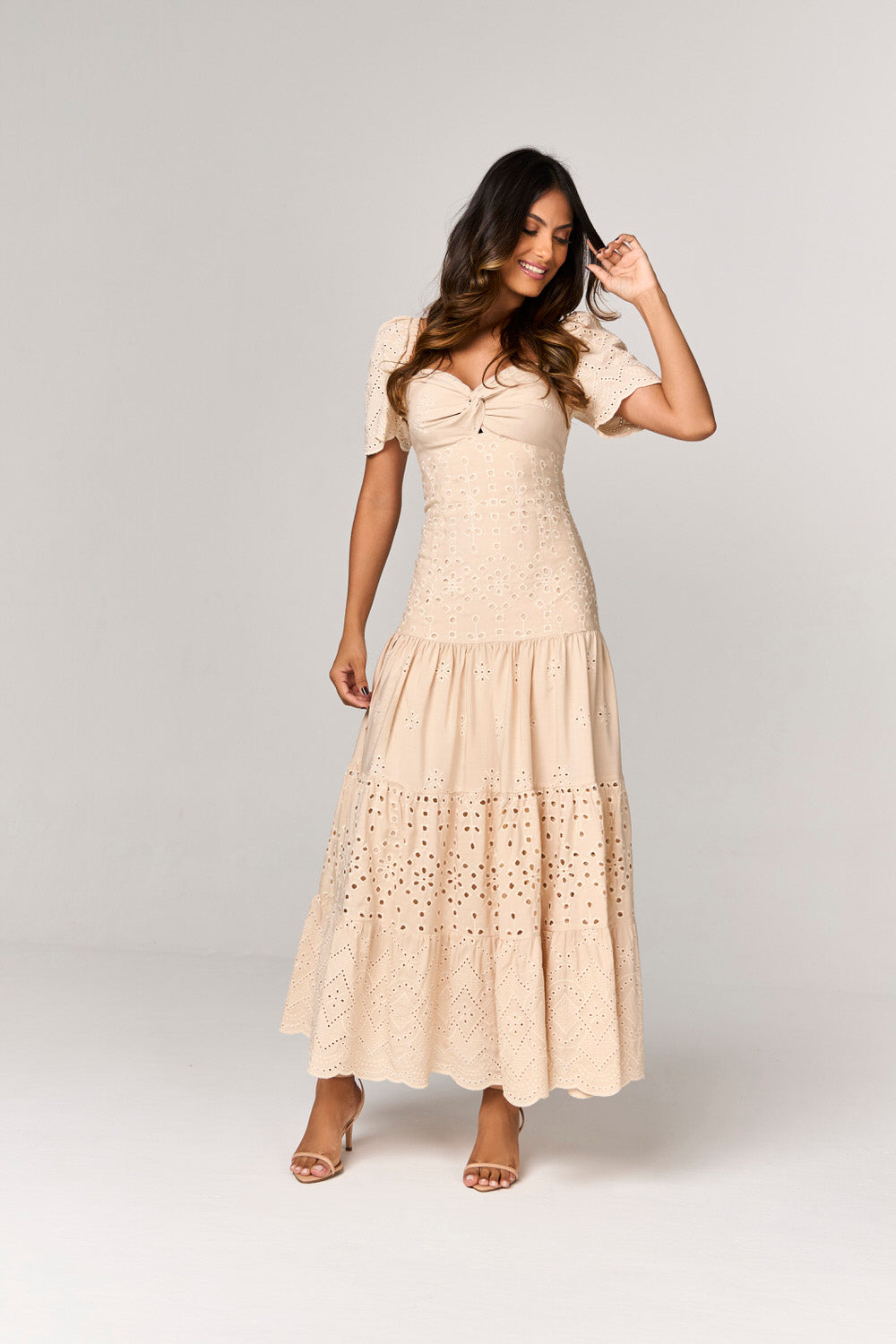 VESTIDO LONGO DE LAISE COM MIX DE TECIDOS