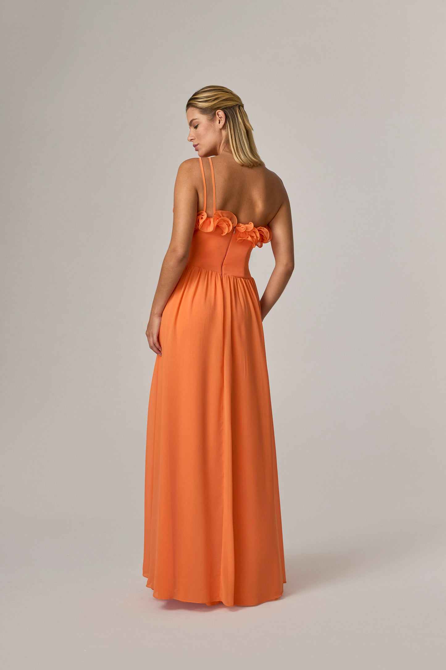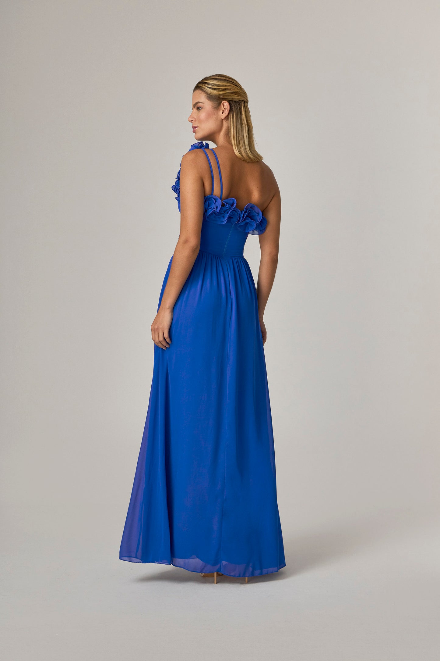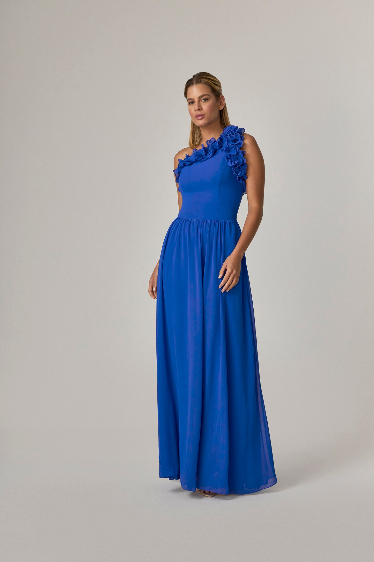 VESTIDO LONGO OMBRO SO COM BABADOS