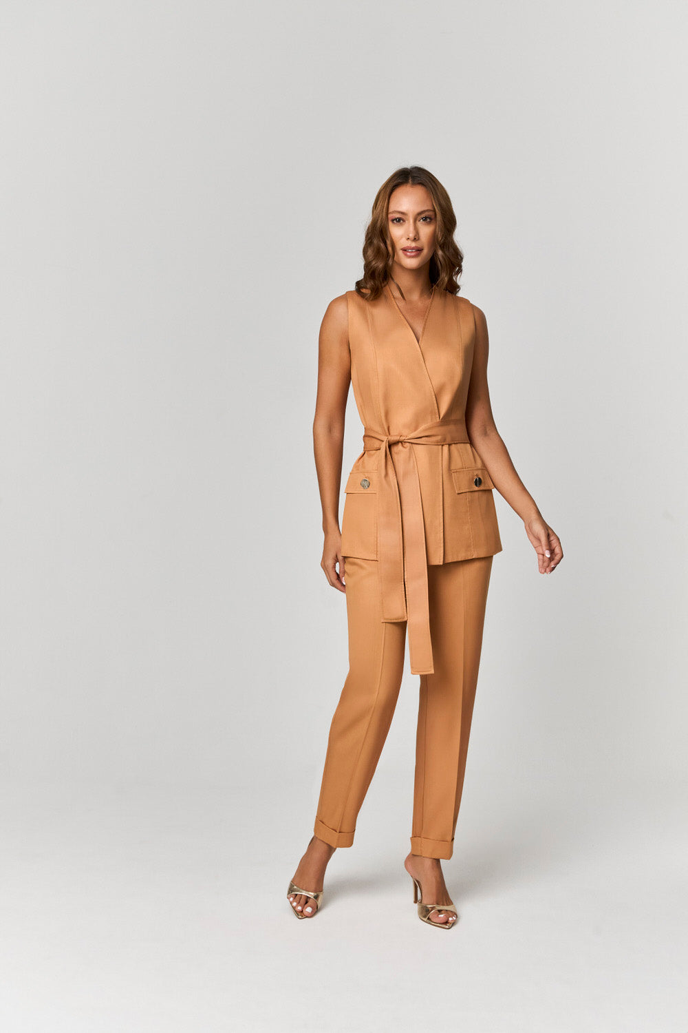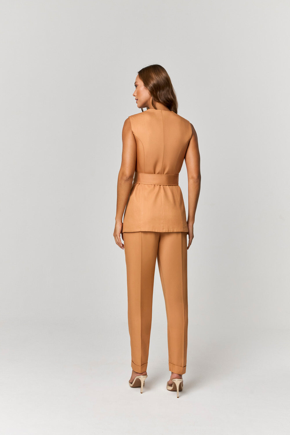 CONJUNTO CALCA E BLUSA COM BOTOES E FAIXA