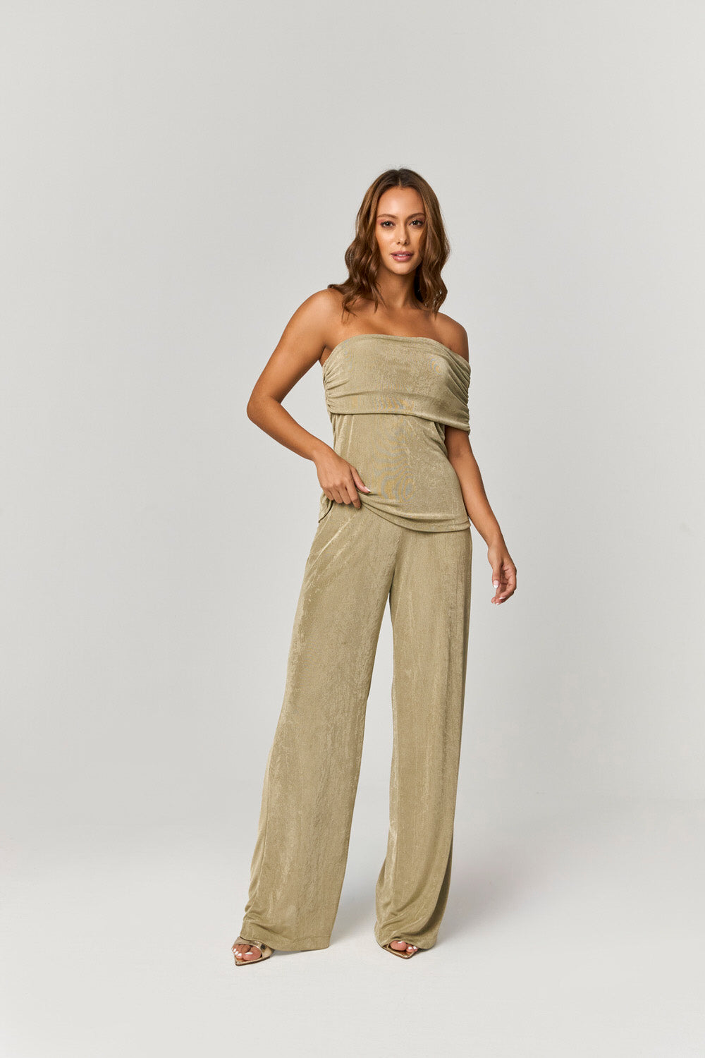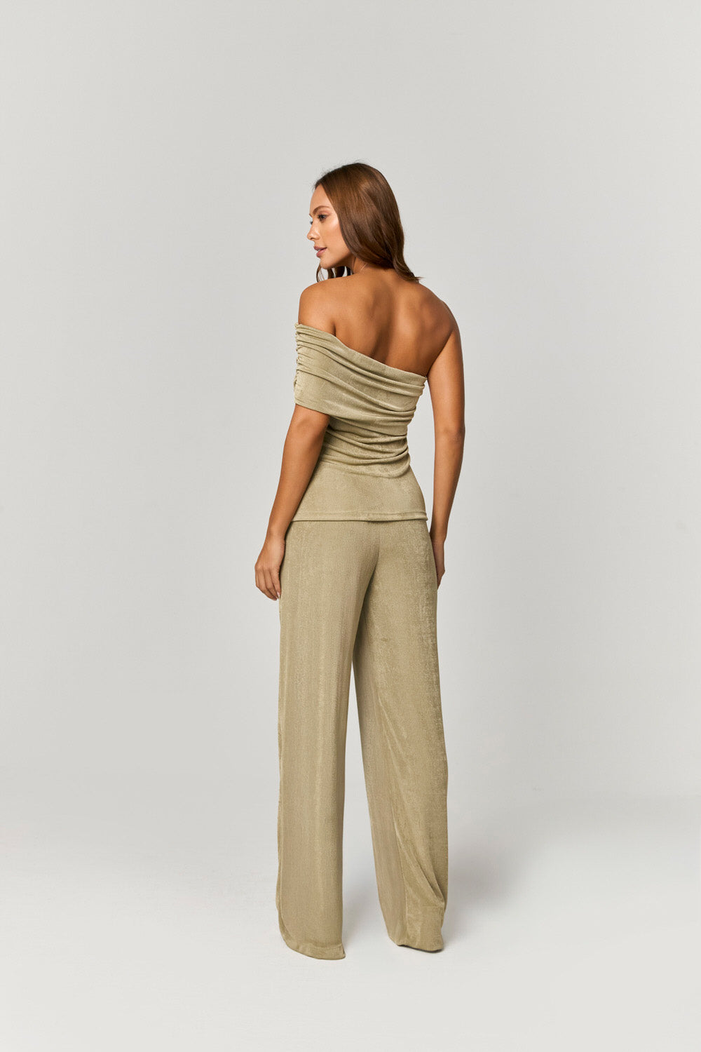 CONJUNTO CALCA E BLUSA DE MALHA COM DRAPEADO BUSTO