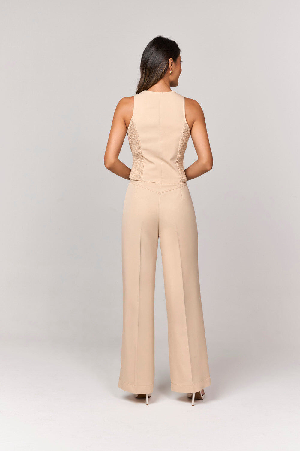 CONJUNTO CALCA E COLETE COM DETALHE BOTOES AZULEJO
