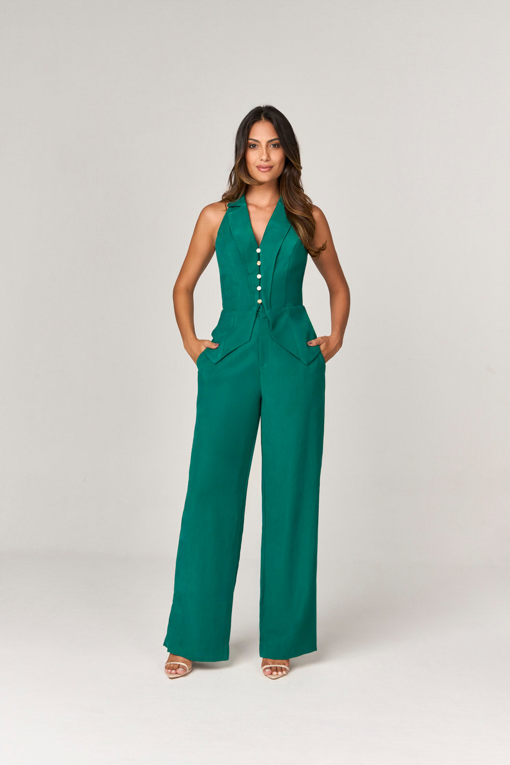 Descubra o requinte e a versatilidade do Conjunto Calça e Colete com Detalhe Botões Moeda. Este conjunto é a escolha perfeita para quem aprecia a elegância de um look sofisticado, sem abrir mão do conforto. O colete apresenta um comprimento médio e uma modelagem ajustada, que valorizam a silhueta feminina. Seu decote em V e a gola com lapela oferecem um toque de classe, enquanto o fechamento frontal com botões agrega um charme adicional à peça.