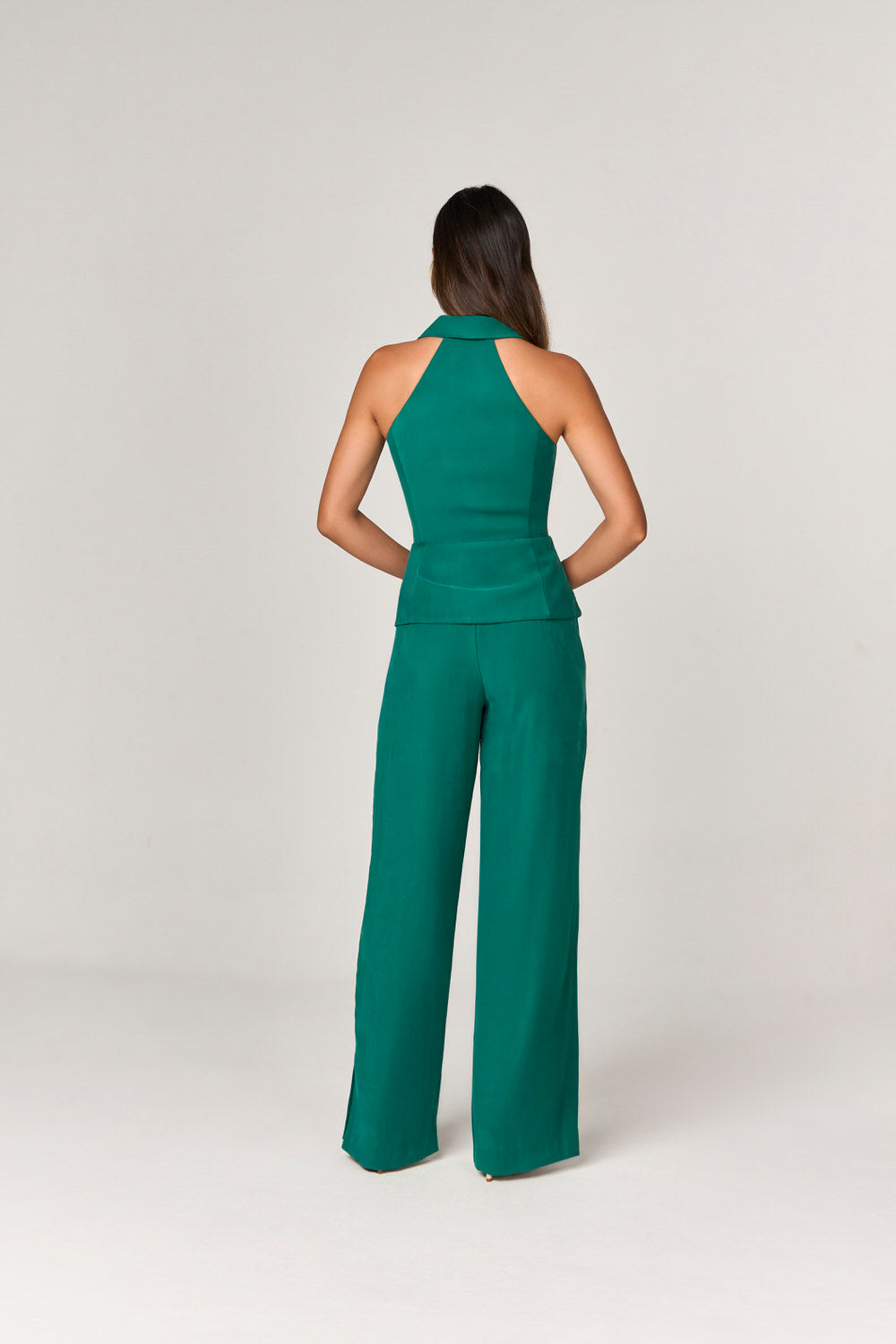 A calça complementa o conjunto com seu comprimento longo e modelagem ampla, proporcionando uma aparência fluida e moderna. Os bolsos laterais são um detalhe prático e estiloso, e o fechamento frontal com colchete e zíper garante um ajuste perfeito. Com uma composição de 90% viscose e 10% poliéster, este conjunto combina conforto e elegância, tornando-o ideal para diversas ocasiões. Aprecie a sofisticação que este conjunto pode trazer ao seu guarda-roupa.