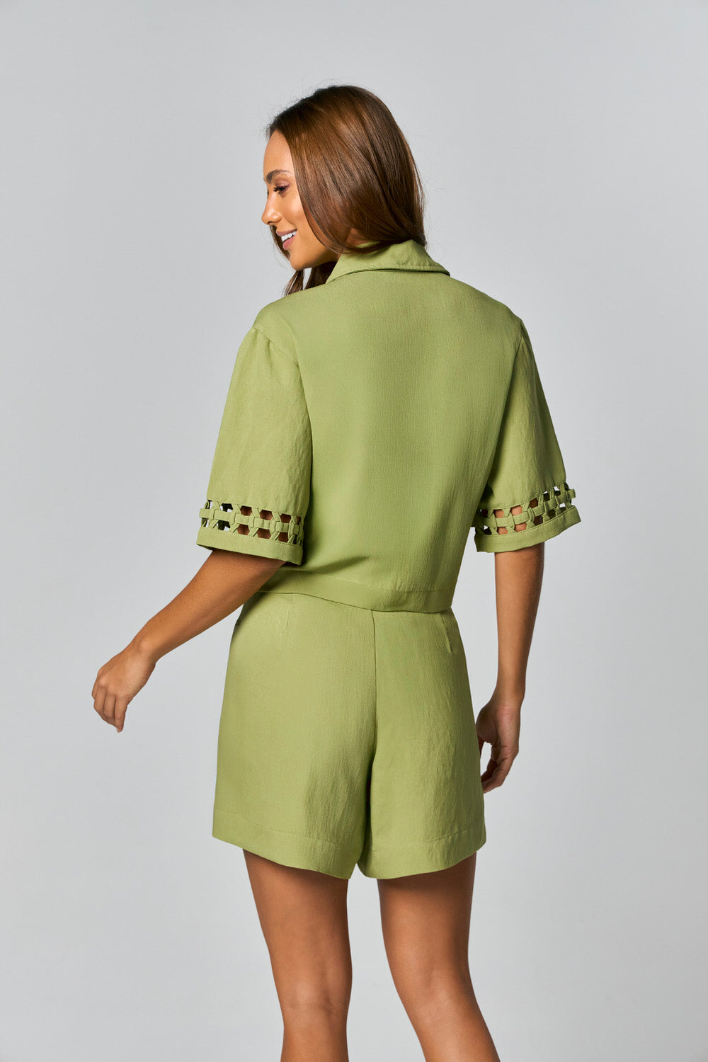 CONJUNTO SHORT E BLUSA COM DETALHE TRANCADO