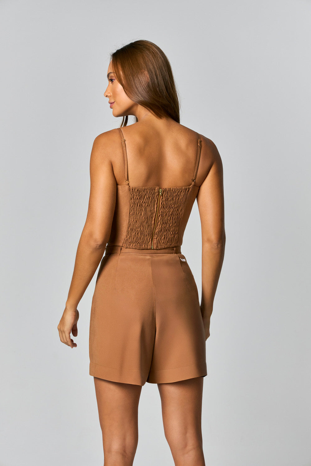 CONJUNTO SHORT E CROPPED COM DETALHE CINTO E FIVCARAMELO