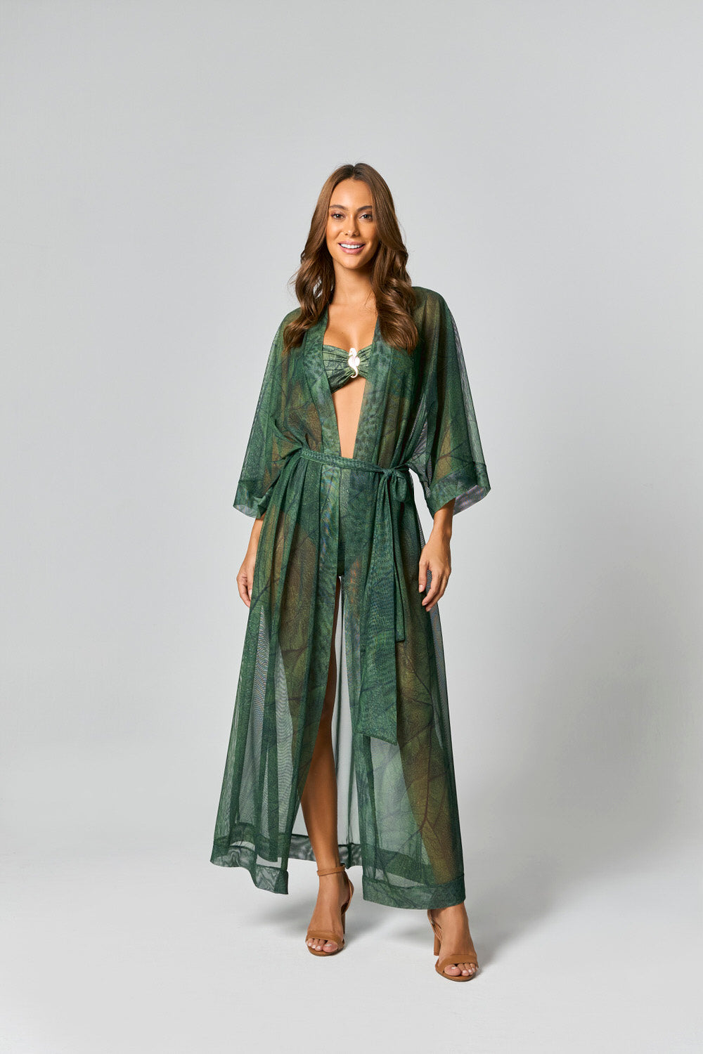BLUSA SAIDA DE PRAIA ESTAMPADA COM FAIXA