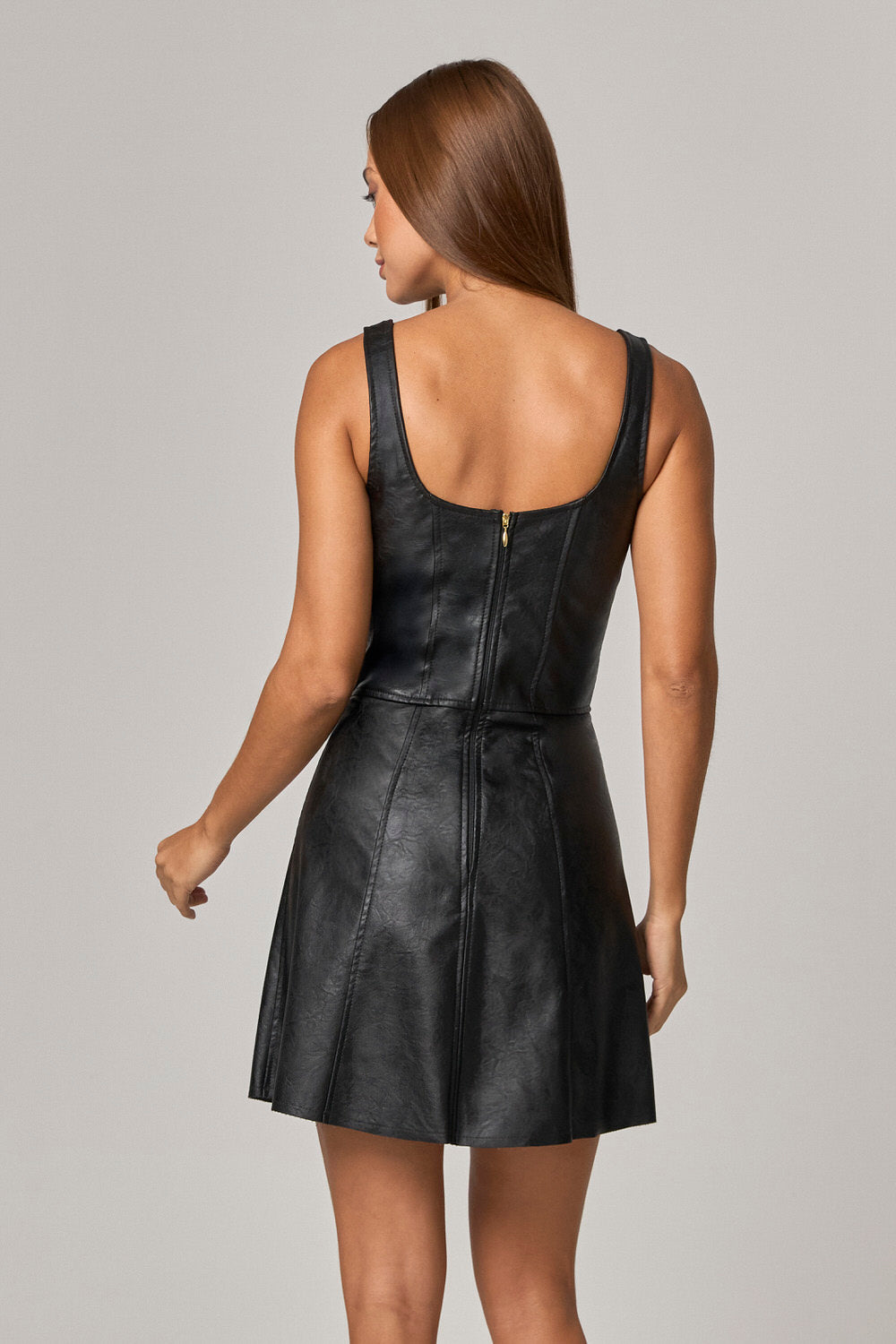 VESTIDO CURTO DE COURO COM DETALHE CORSET