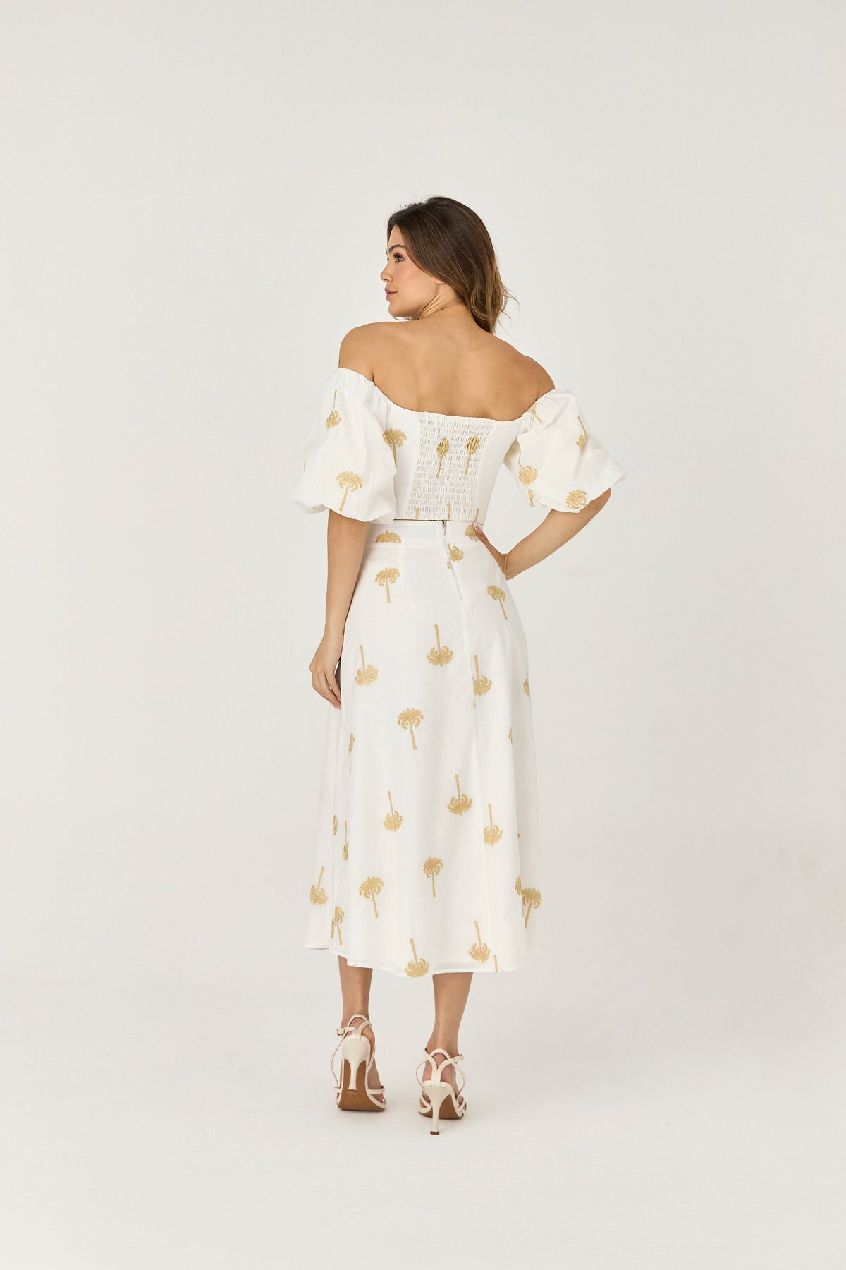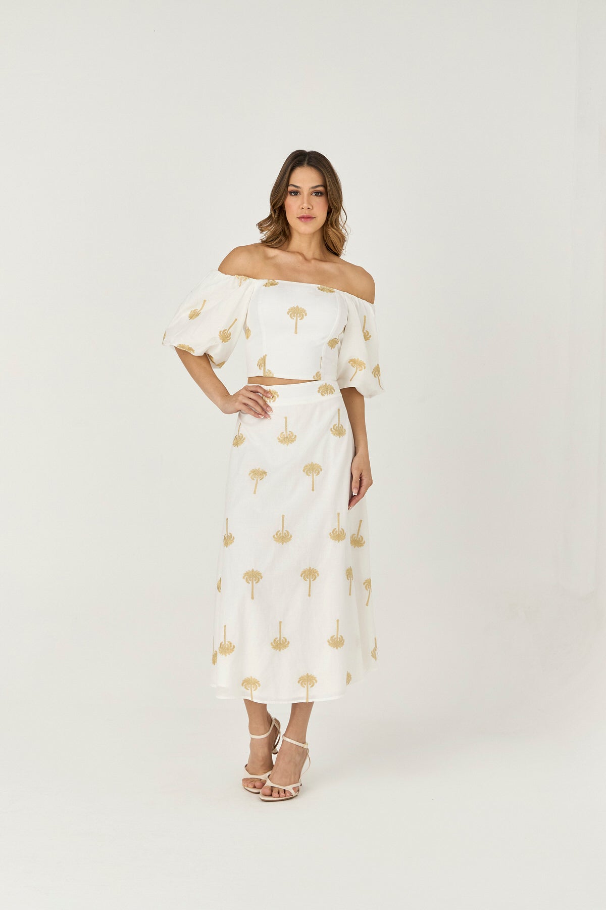 CONJUNTO SAIA E BLUSA MANGA BUFANTE DETALHE BORDADO