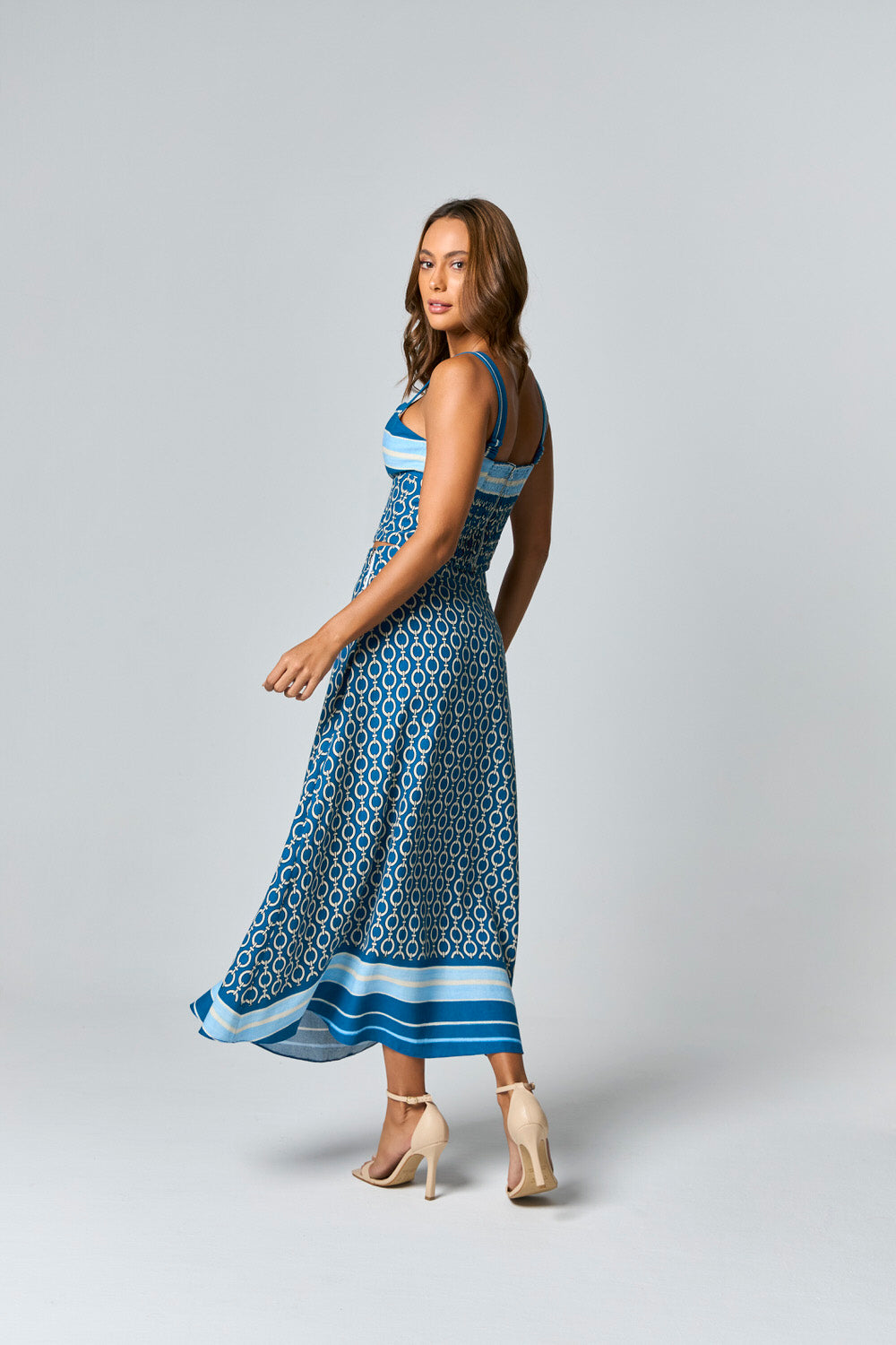 CONJUNTO SAIA E CROPPED ESTAMPADO COM BARRADO