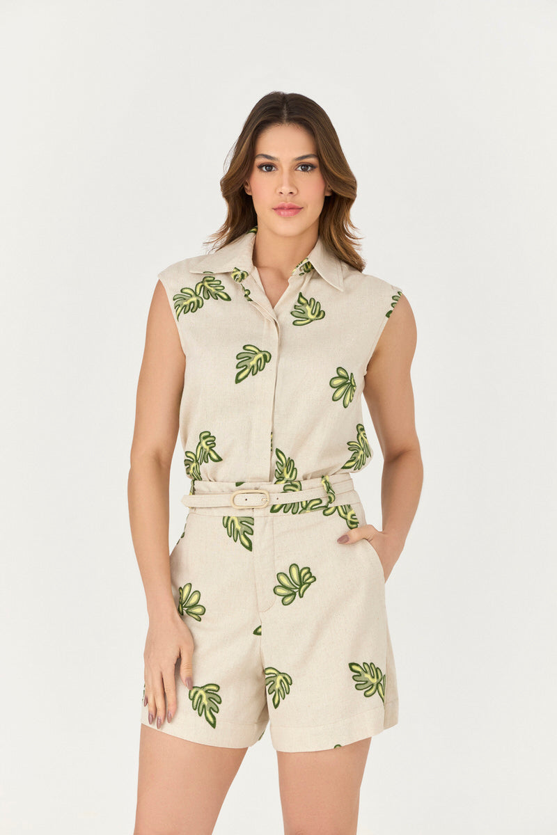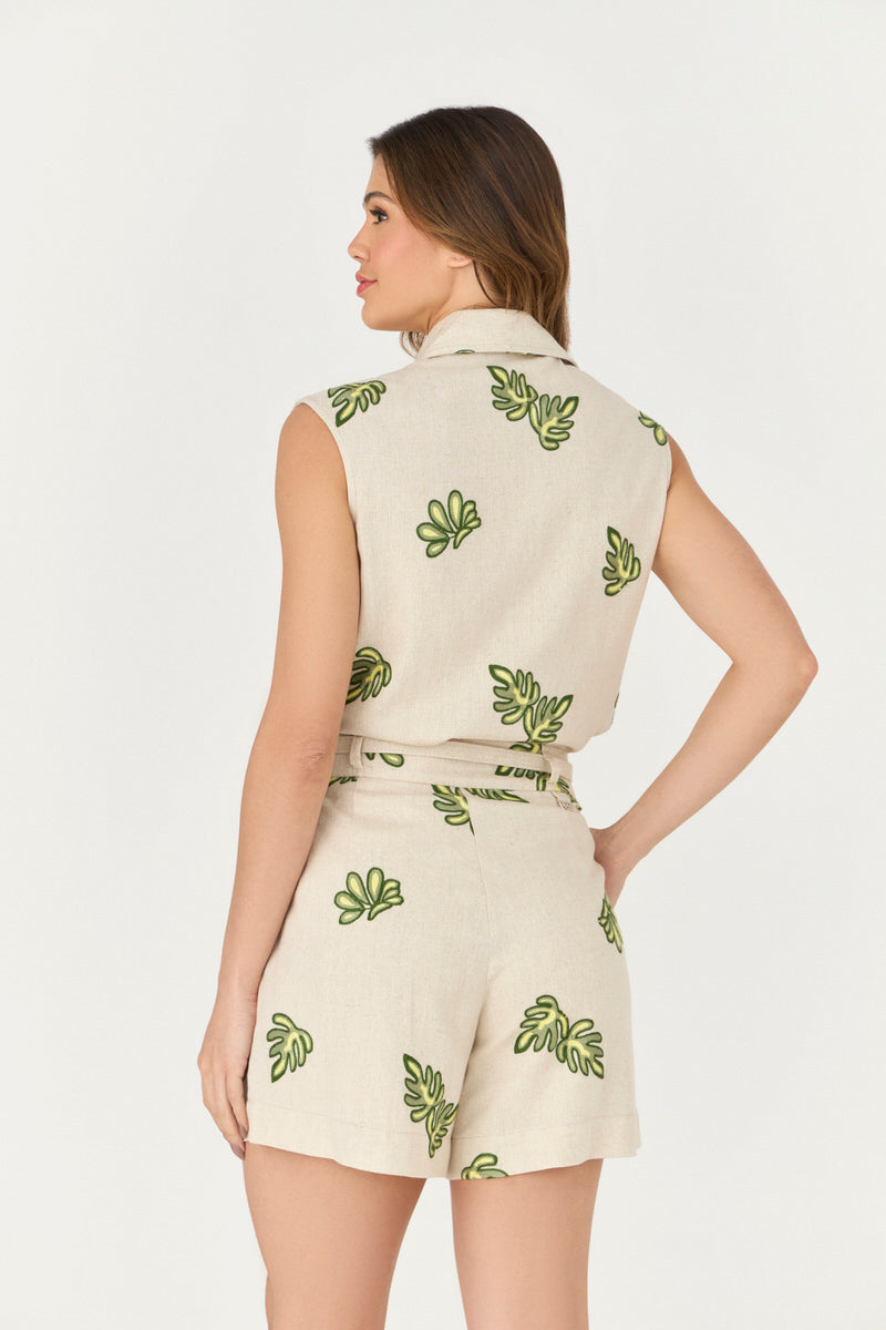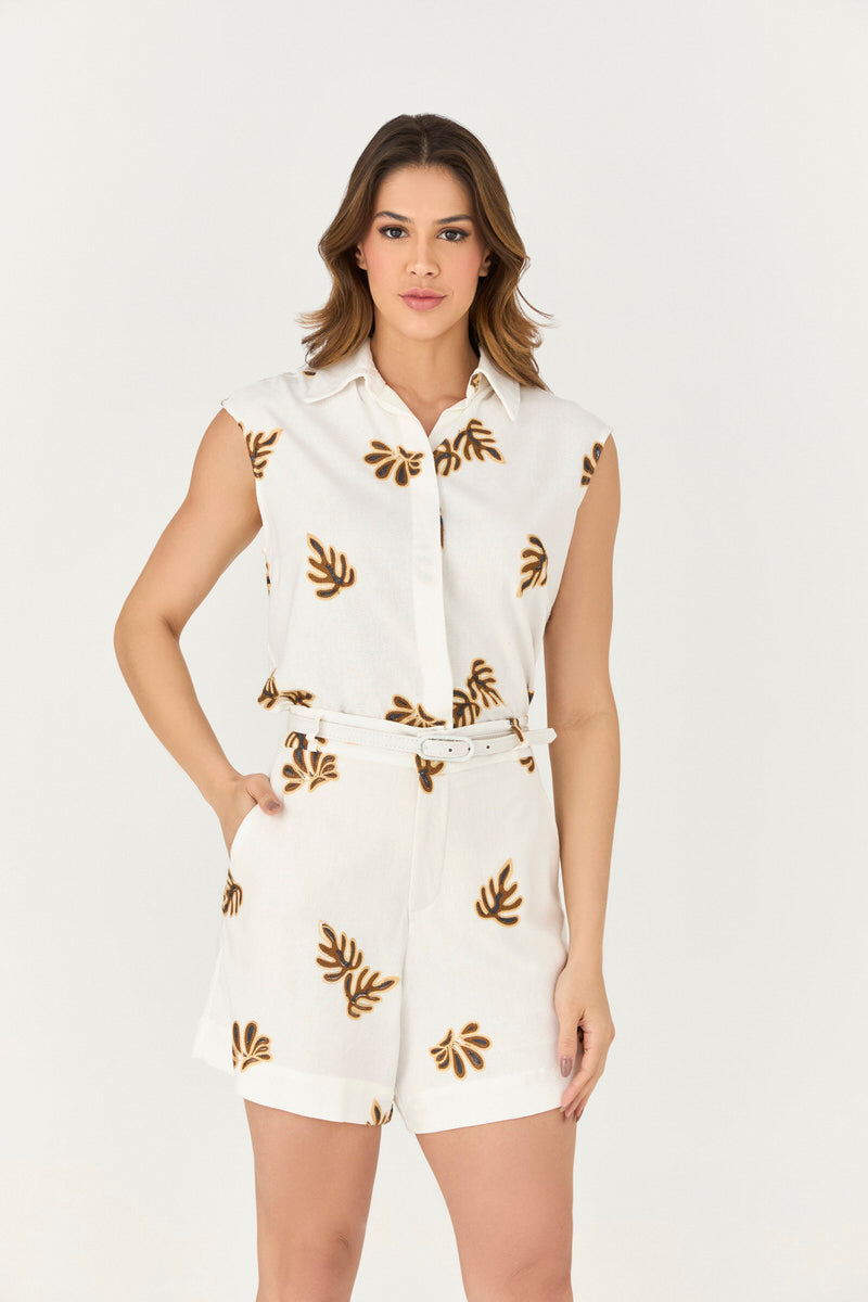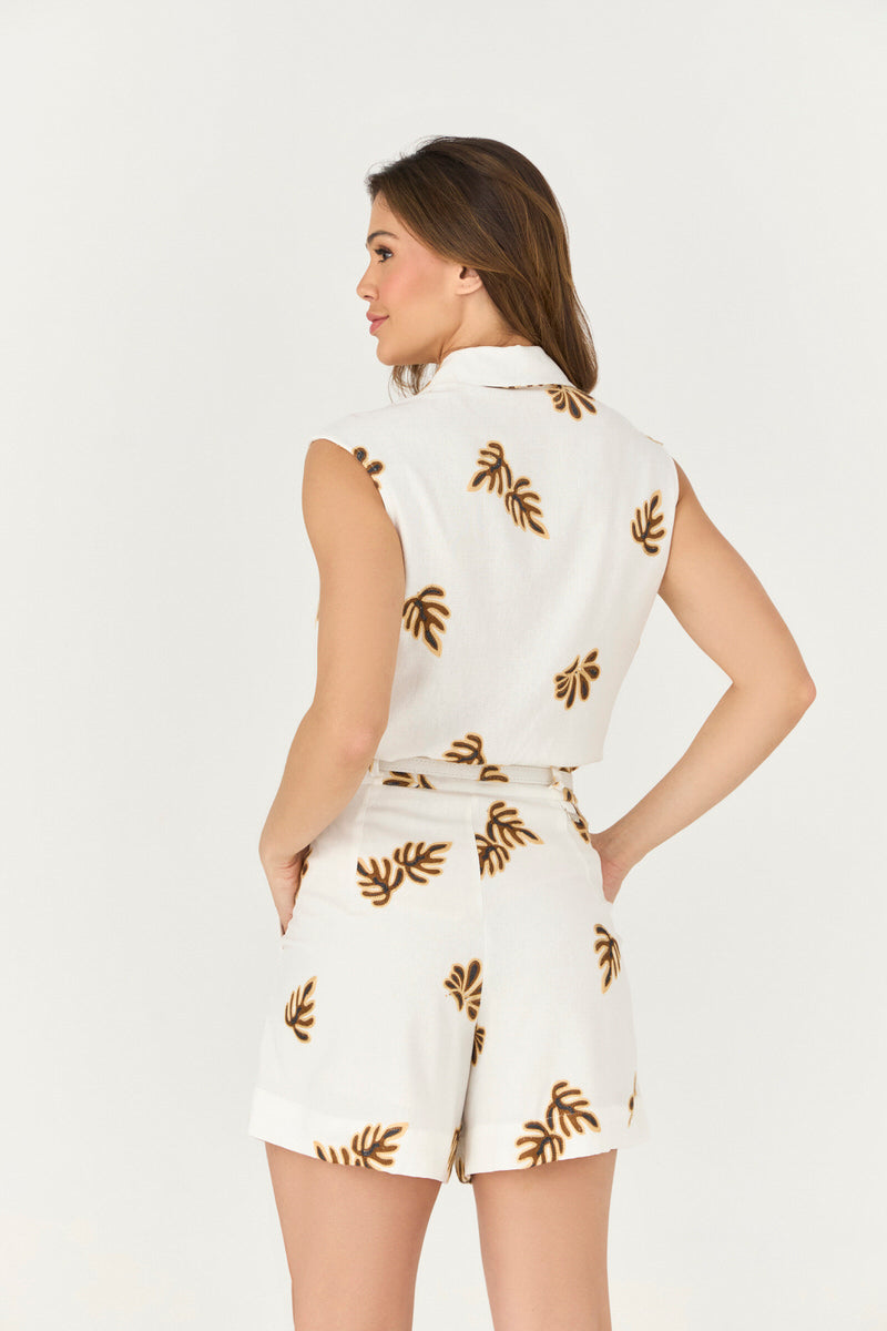 CONJUNTO SHORT E BLUSA DETALHE TECIDO TRABALHADO