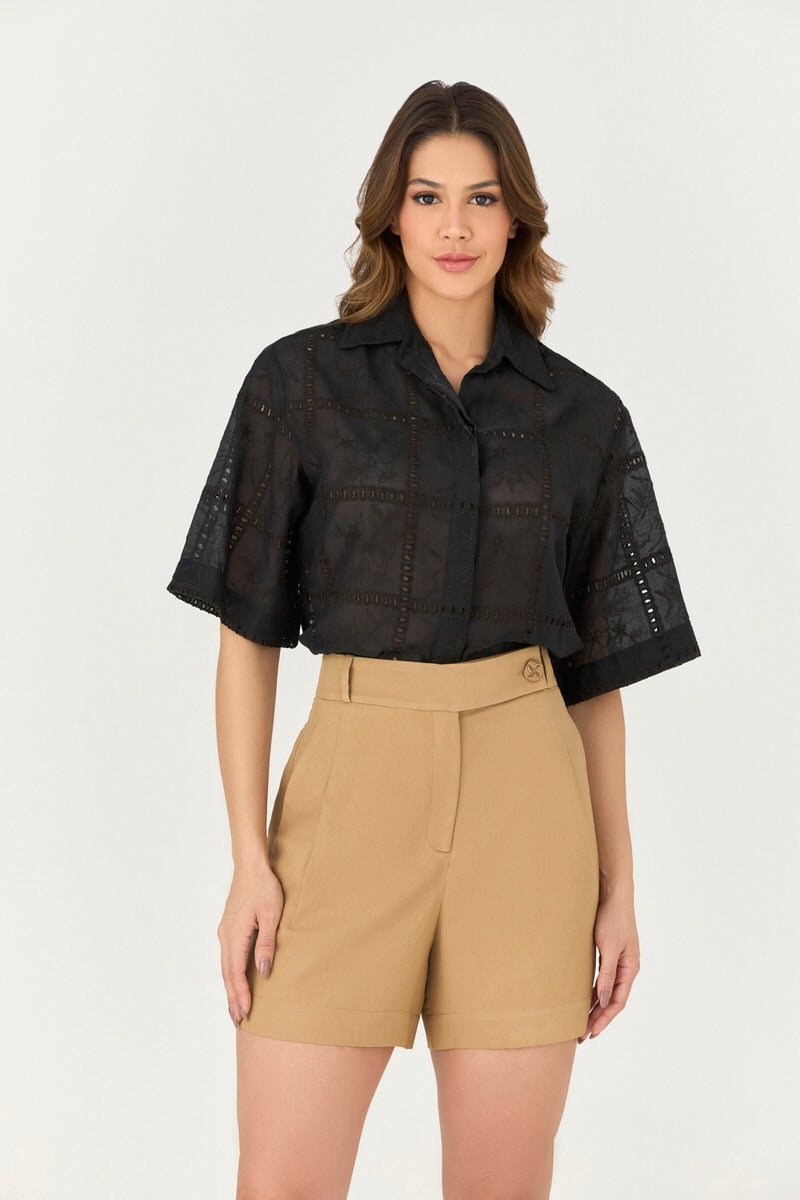 SHORT ALFAIATARIA COM DETALHE BOTAO