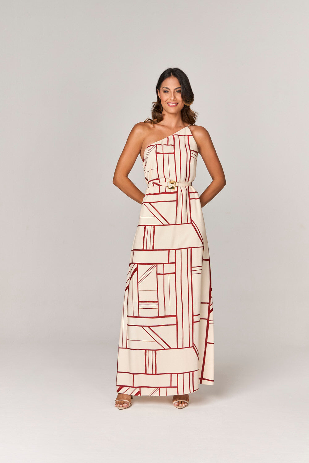 Experimente a elegância e o charme do Vestido Longo Estampado com Assimetria e Fivela. Este deslumbrante vestido é perfeito para ocasiões especiais, proporcionando um toque de sofisticação ao seu guarda-roupa. Com sua modelagem reta e decote assimétrico, ele valoriza a silhueta feminina de maneira única, enquanto o detalhe de um ombro só acrescenta um ar de modernidade e ousadia. O fechamento lateral com zíper garante um ajuste seguro e confortável, permitindo que você se mova com facilidade e confiança.