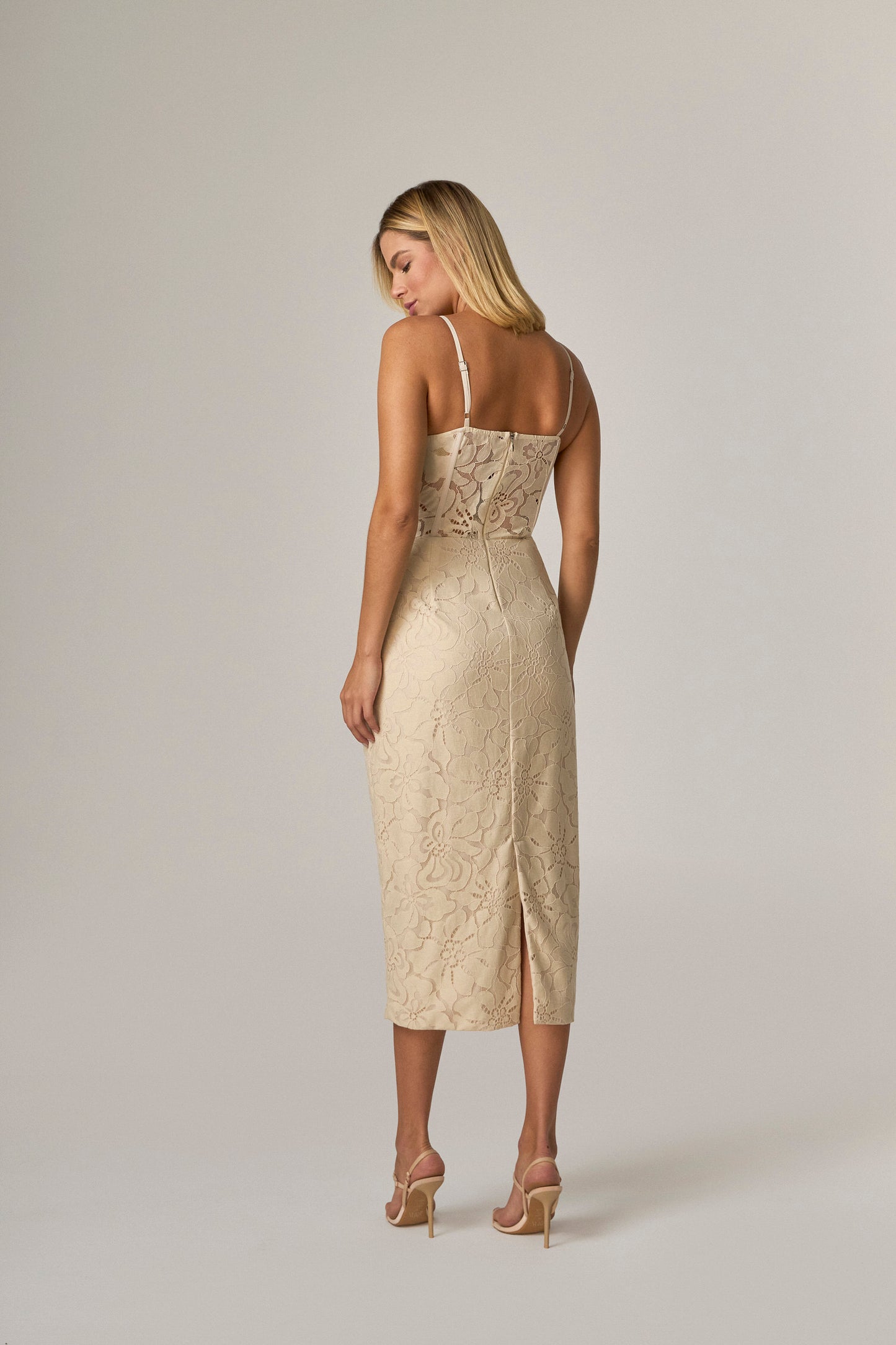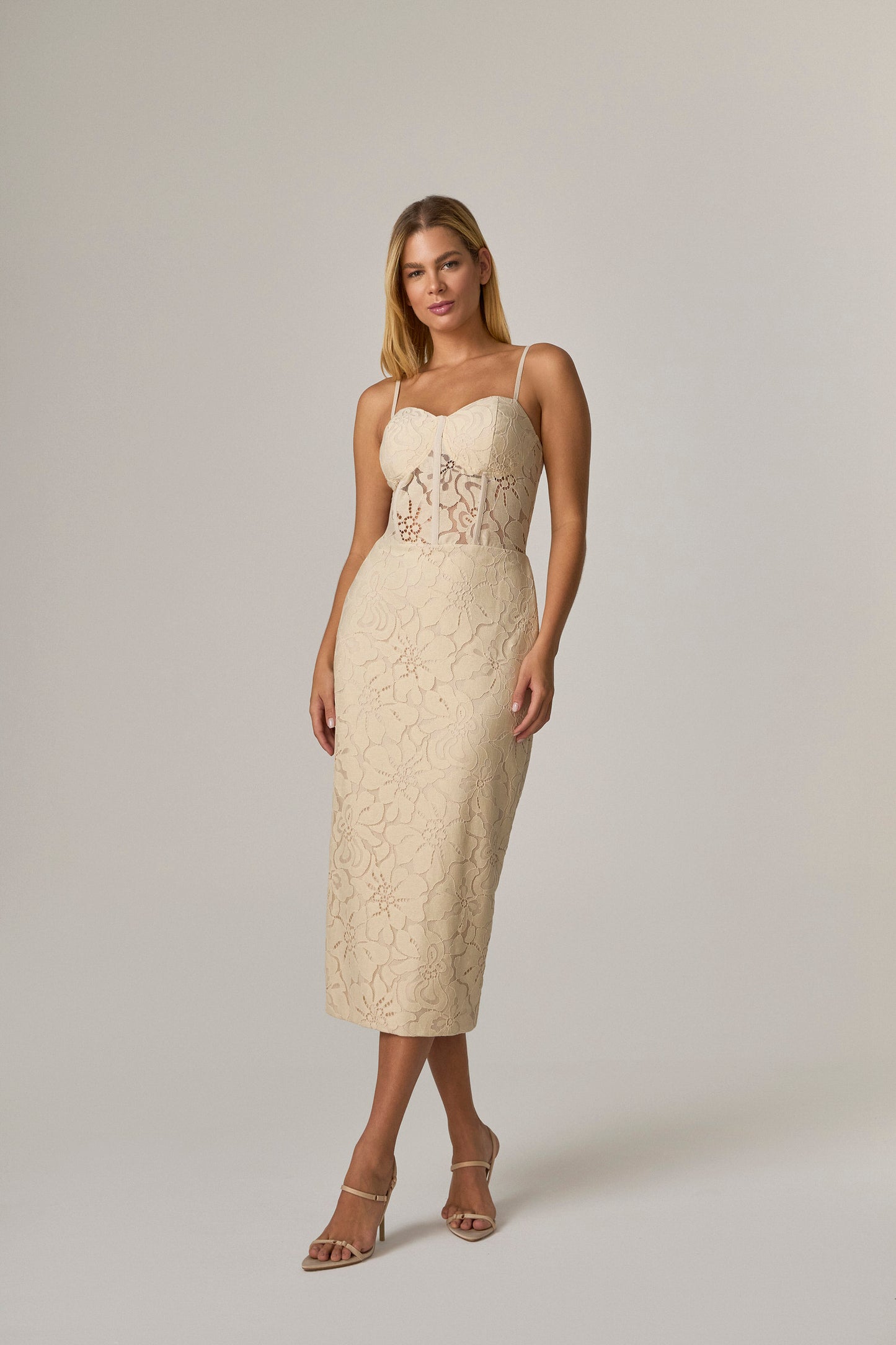 VESTIDO MIDI VESTIDO MIDI RENDA DETALHE CORSET