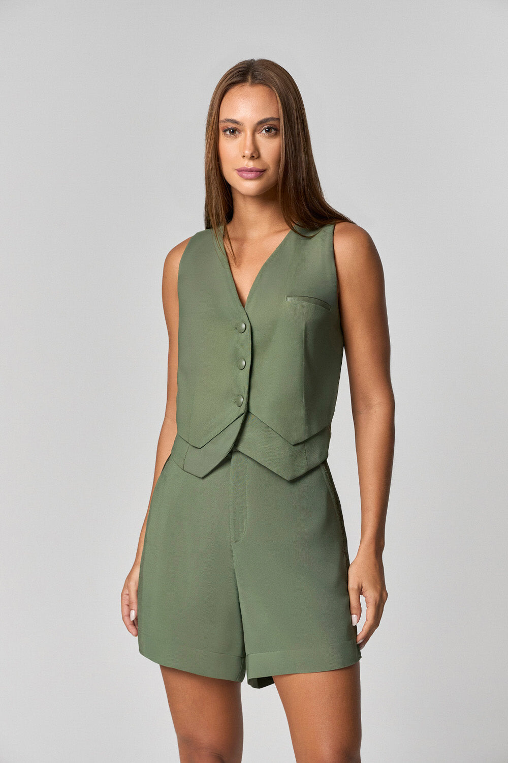 COLETE ALFAIATARIA COM DETALHE DE COURO