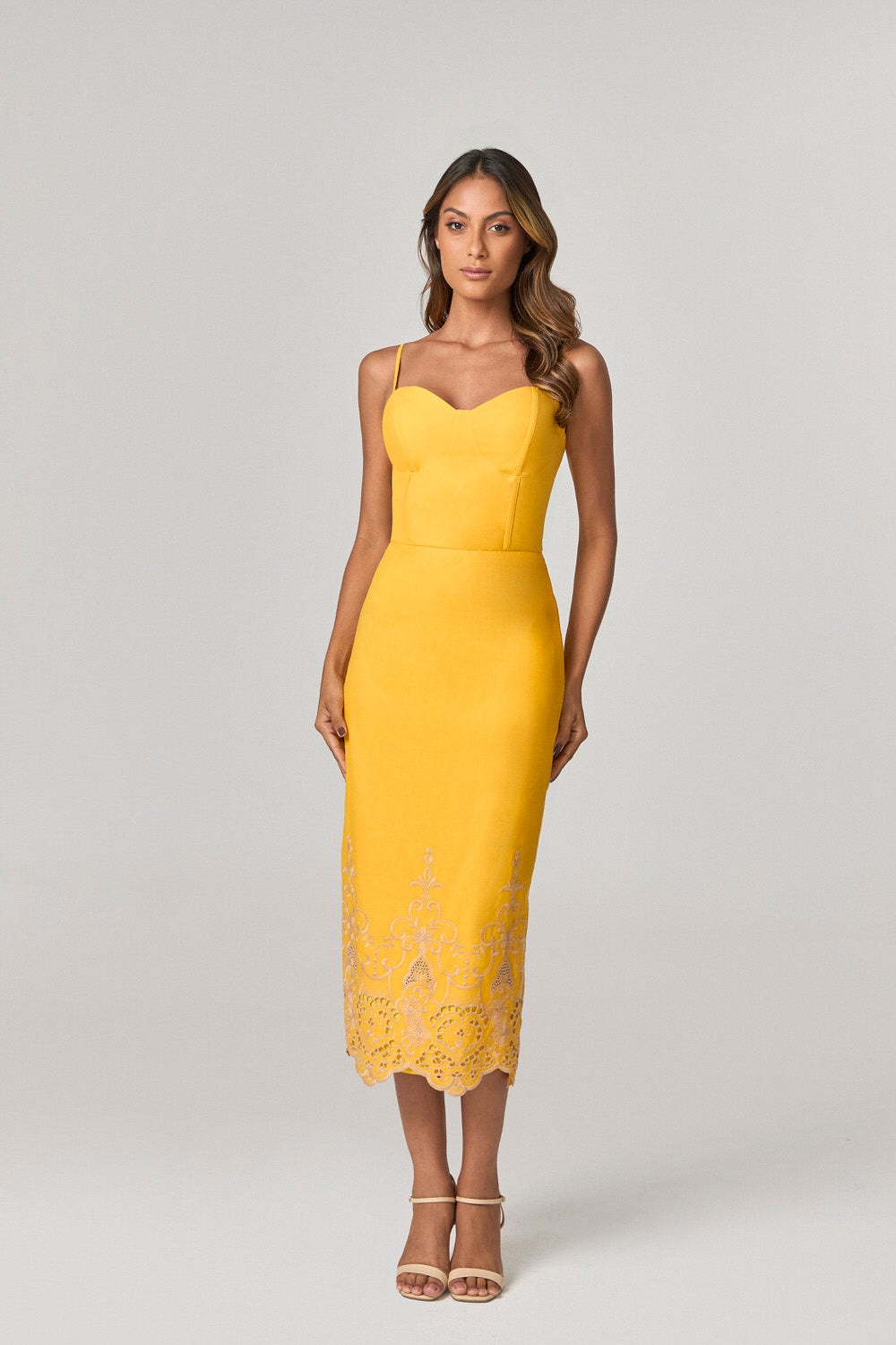 VESTIDO MIDI COM DETALHE BORDADO