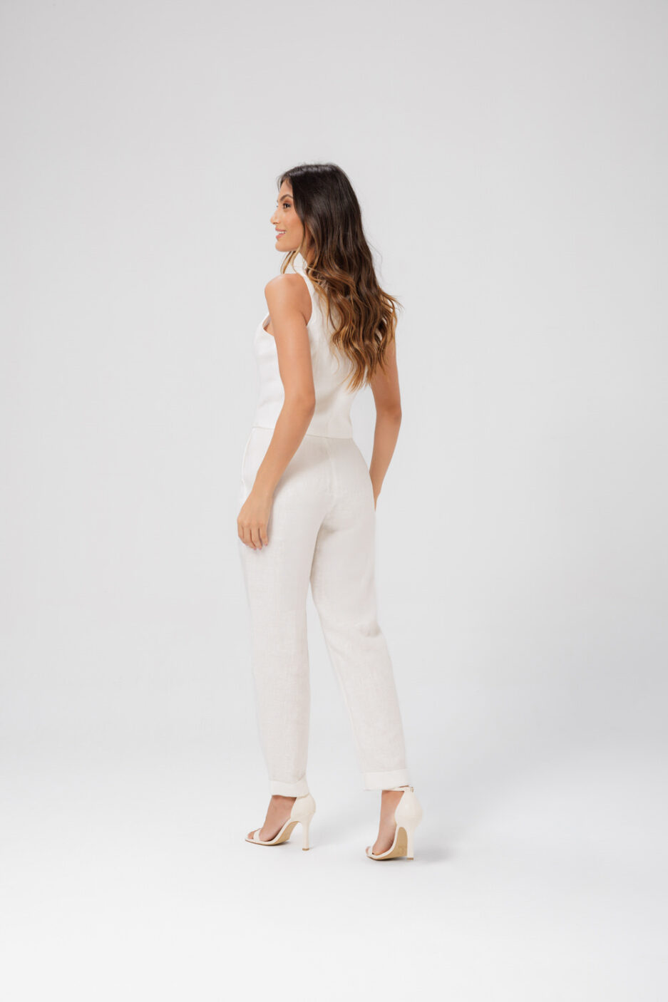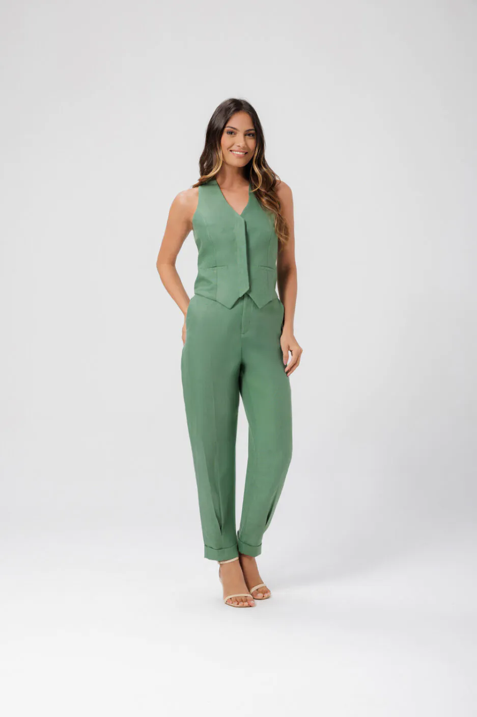 Conjunto Calca E Colete Com Detalhe Verdugo E Botao Flor