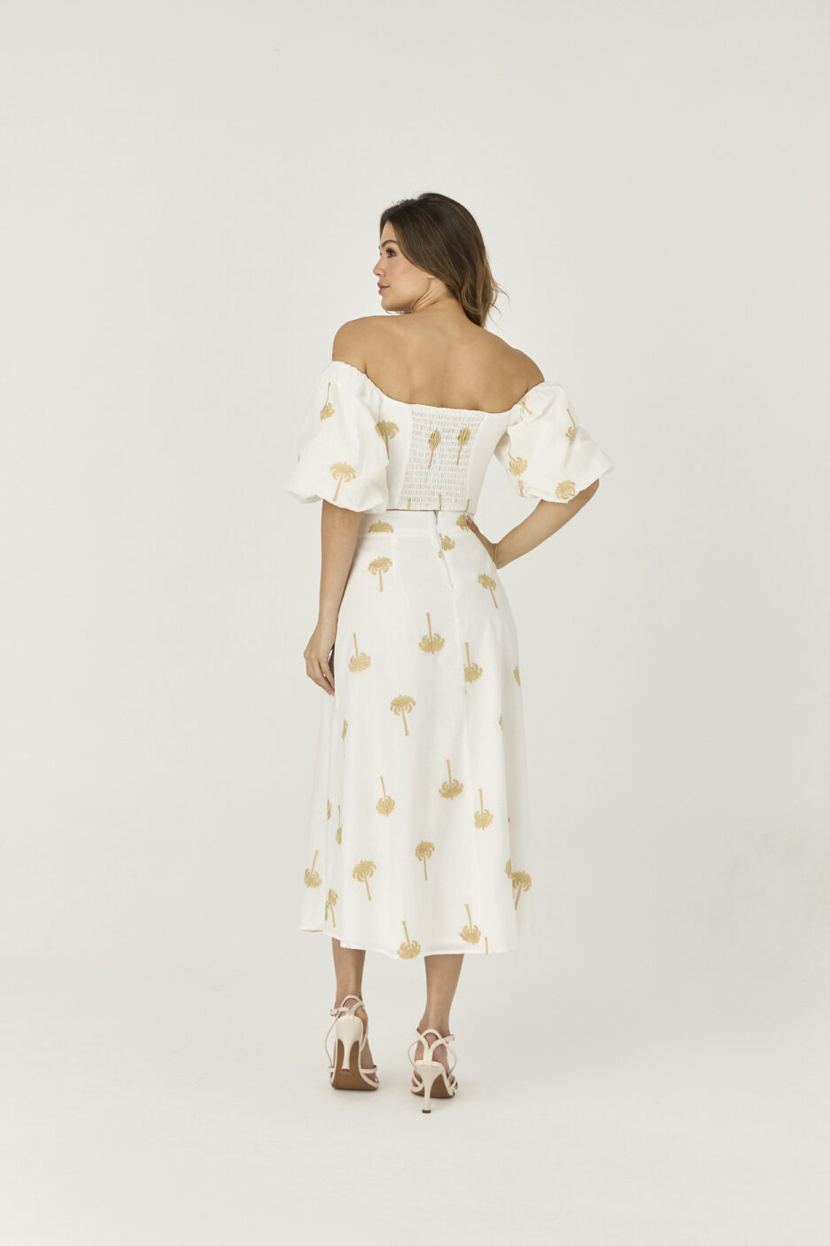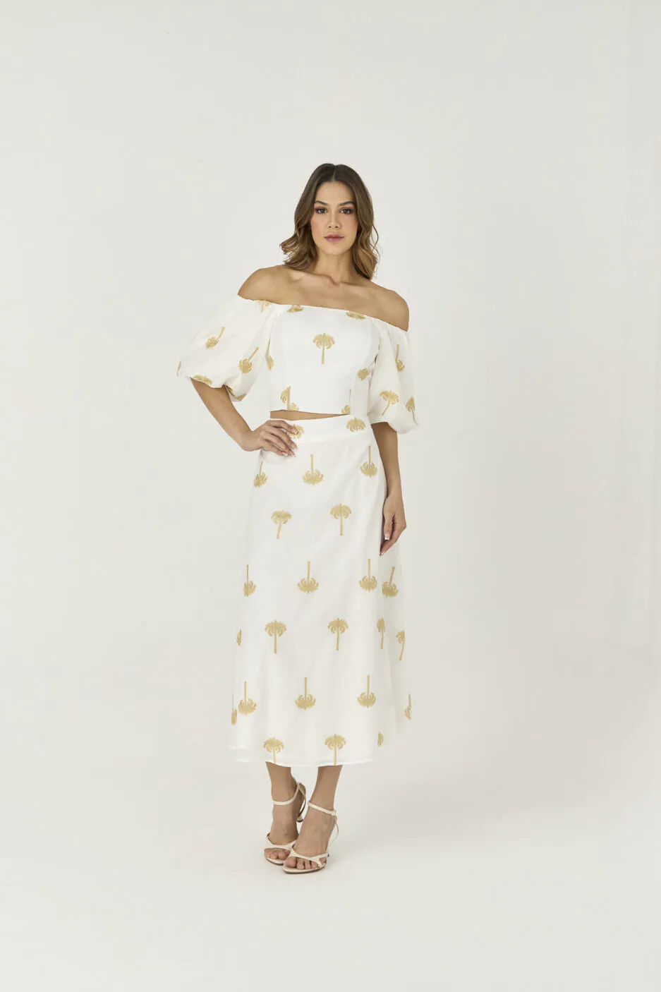 Conjunto Saia E Blusa Manga Bufante Detalhe Bordado