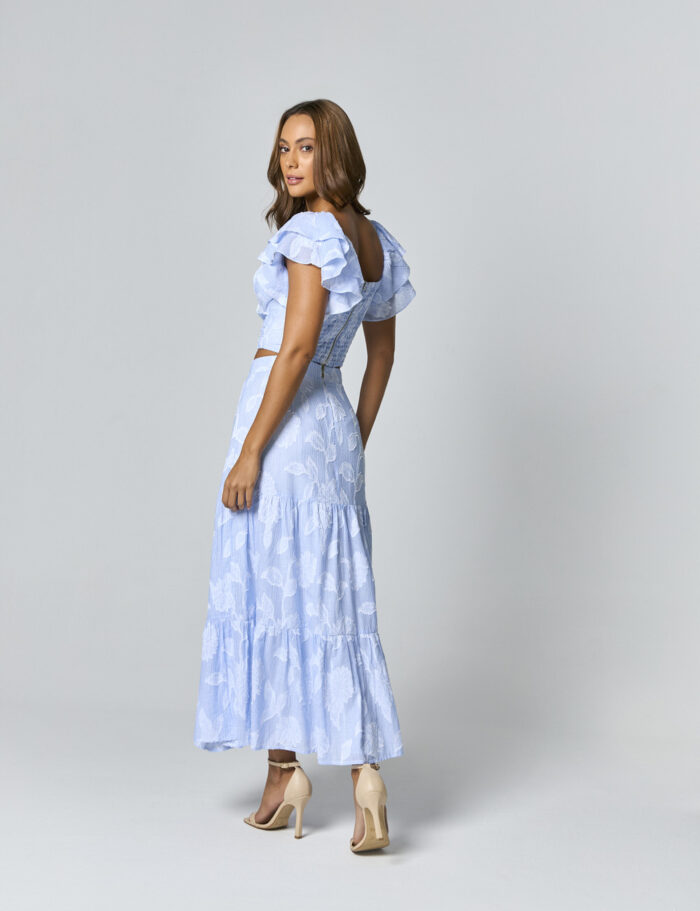Conjunto Saia Midi E Cropped Com Detalhe Bordado