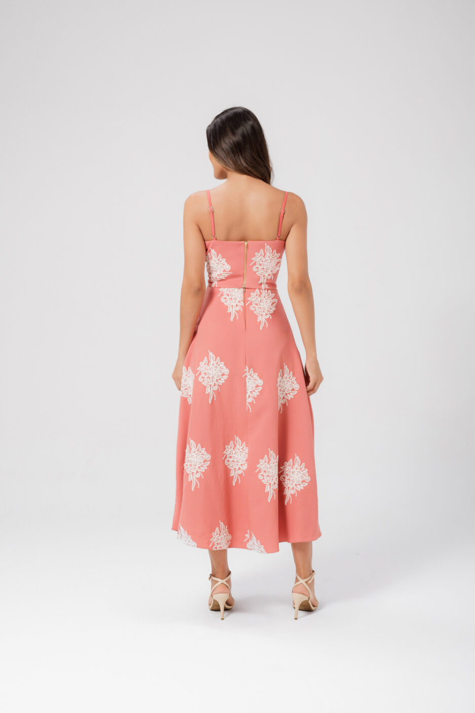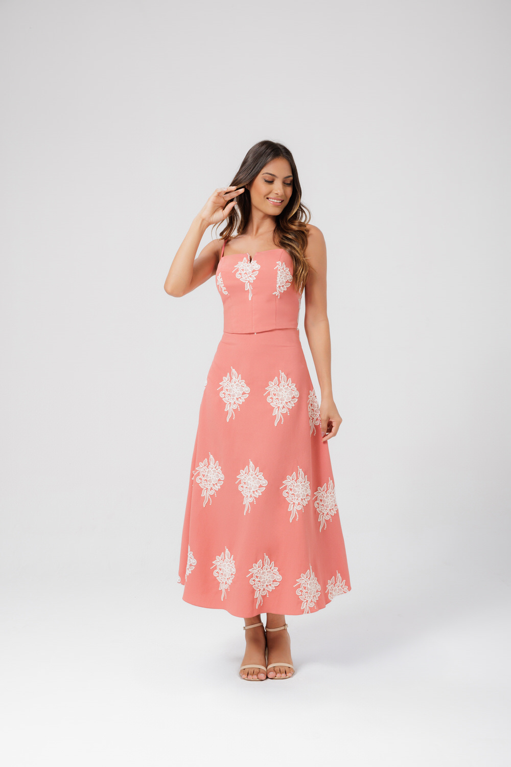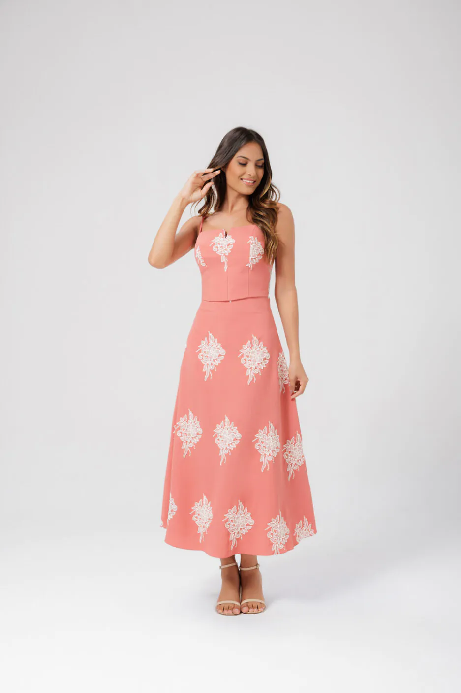 Conjunto Saia Midi E Cropped Com Tecido Bordado