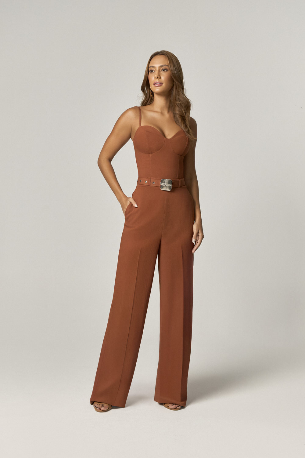 Macacao Alfaiataria Com Busto Corset E Detalhe Cinto