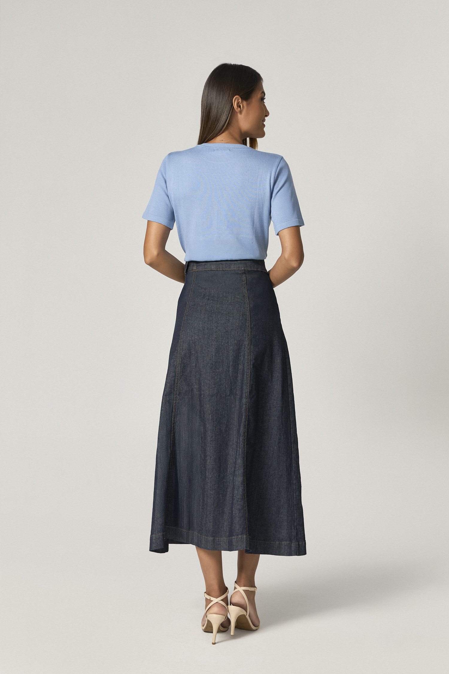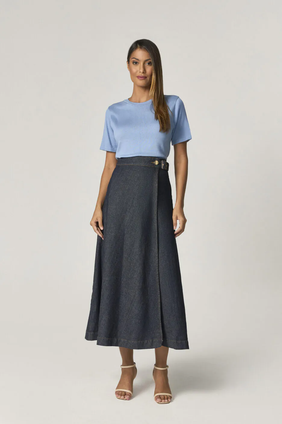 Saia Midi Estampada De Poa Com Detalhe Renda