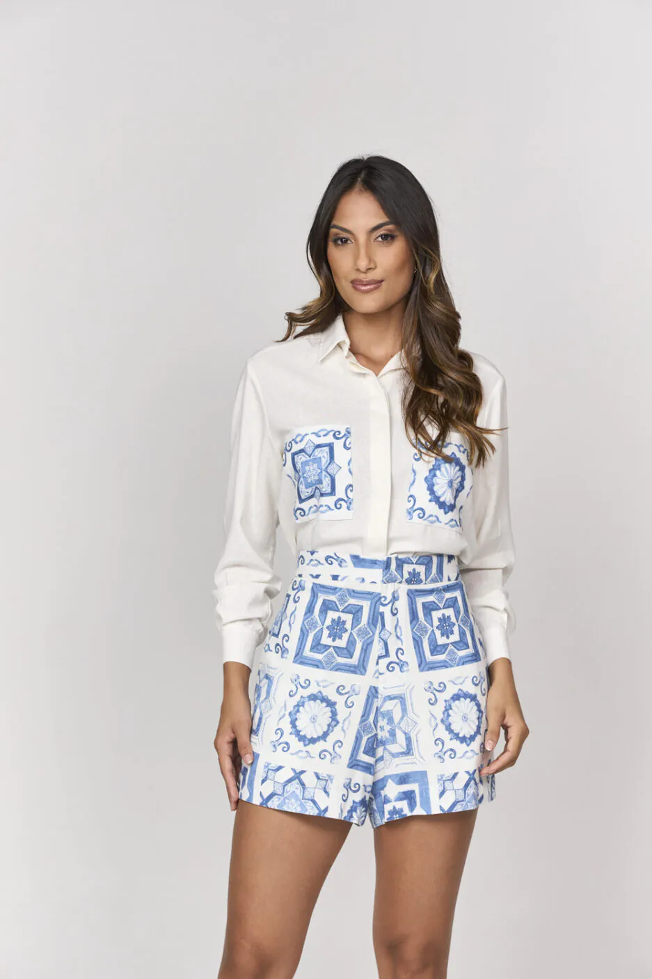 Short Estampado Com Azulejos