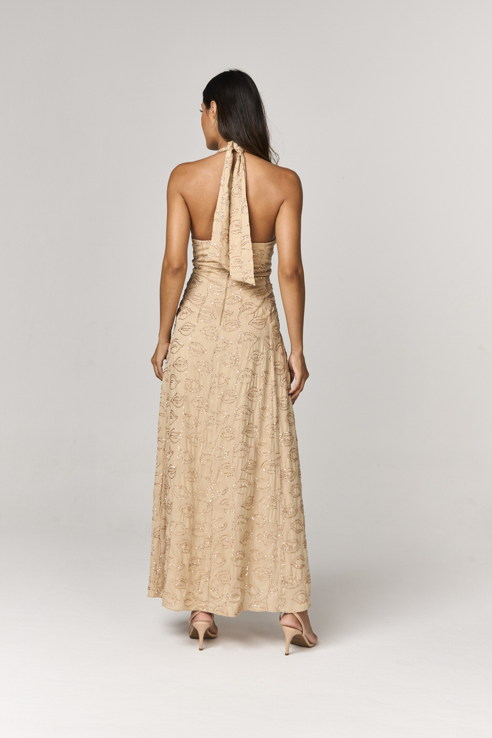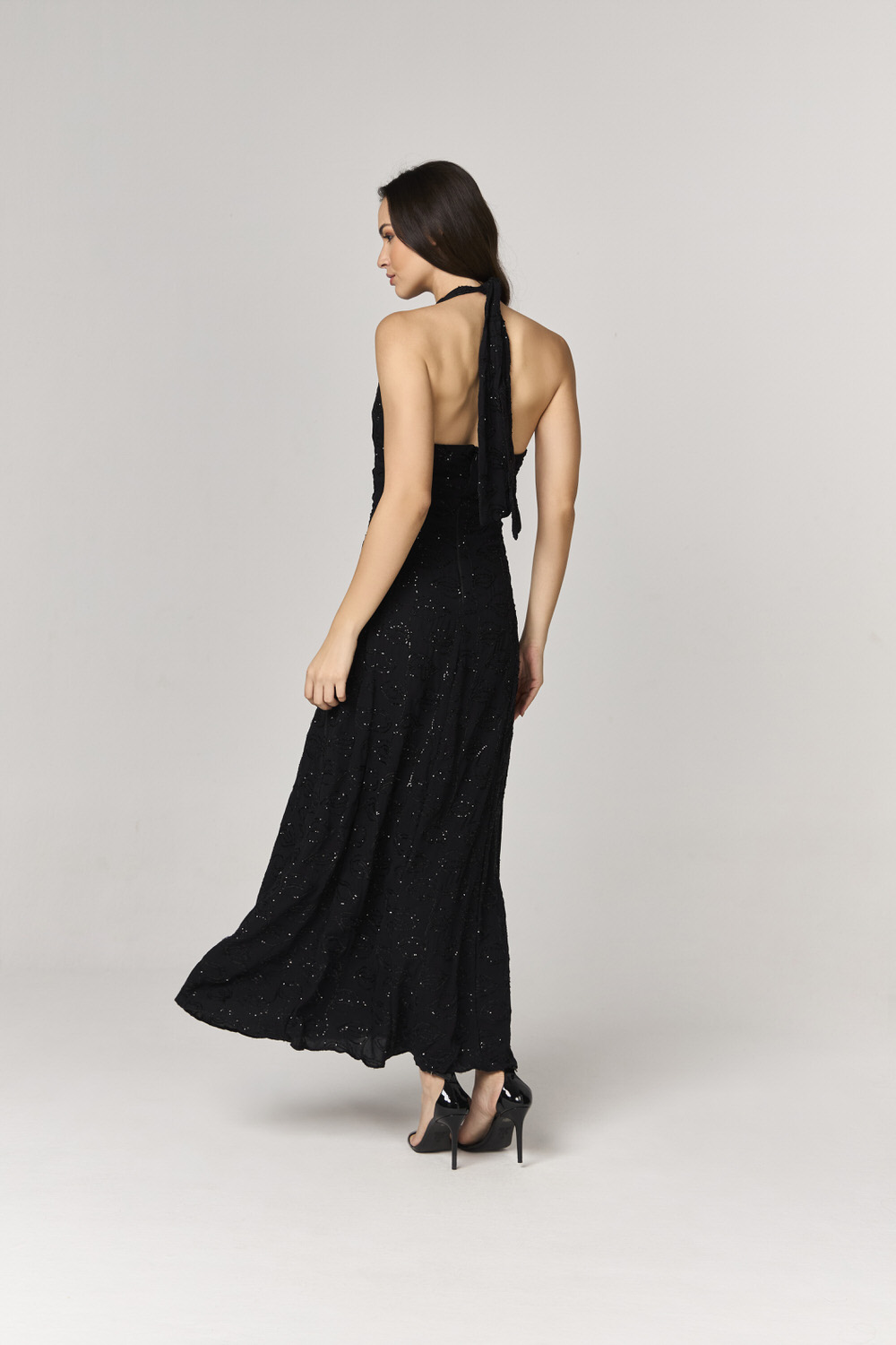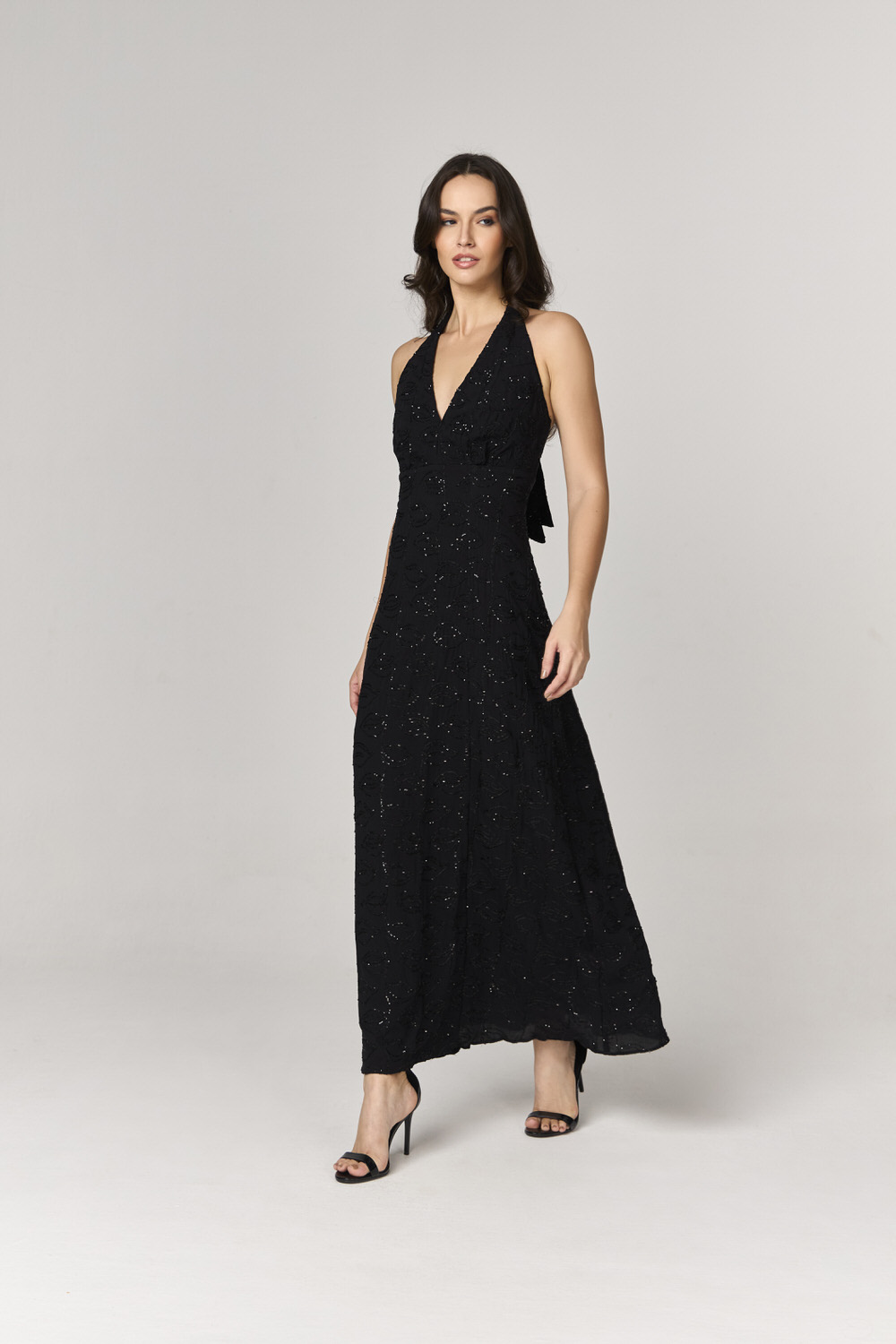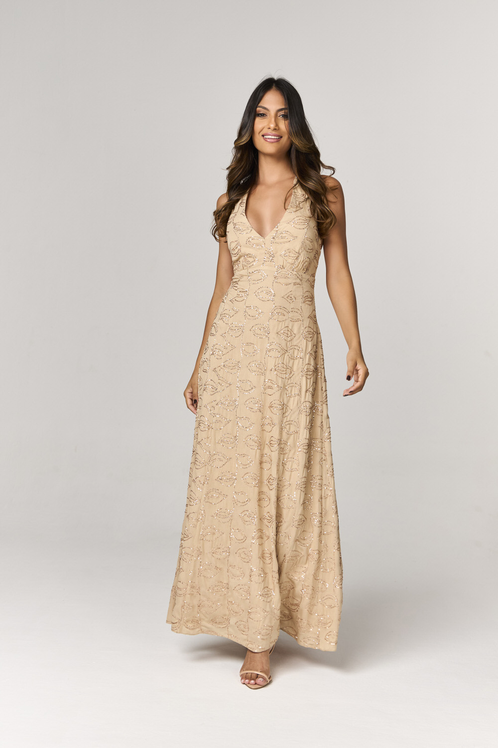 Aposte no Vestido Longo com Detalhe Paeté para exalar confiança e charme em qualquer ambiente. Transforme sua presença e deixe uma marca inesquecível onde quer que você vá.