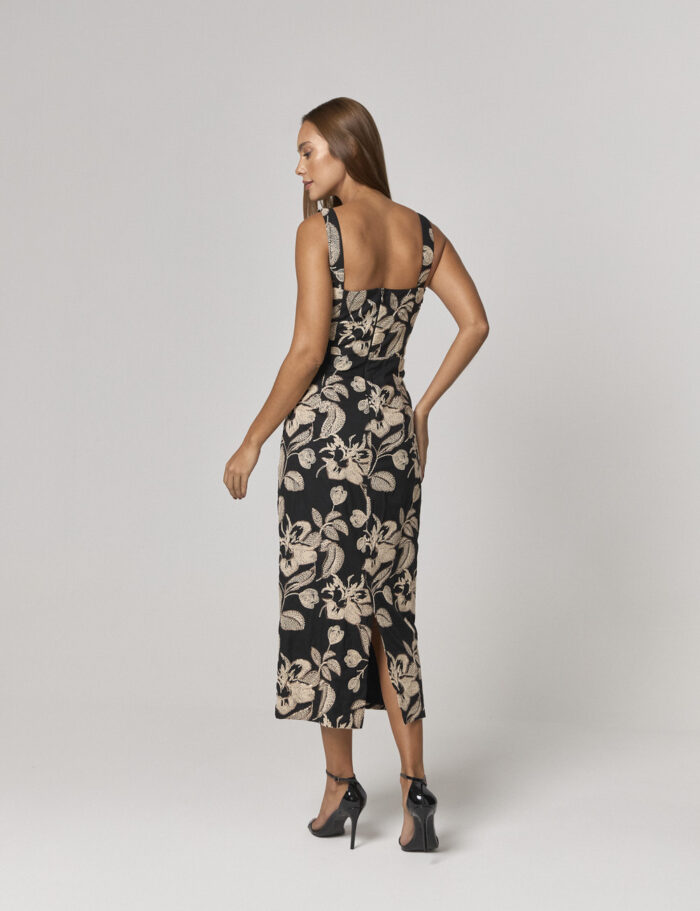 Vestido Midi Com Tecido Bordado