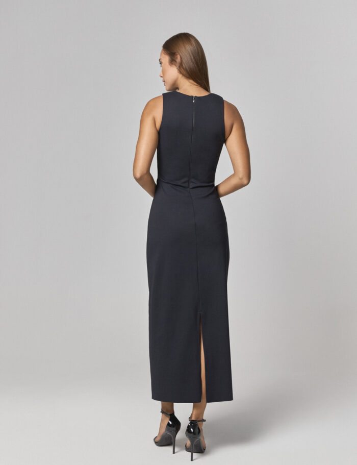 Vestido em tecido de fibra artificial, em modelagem midi, elegante com caimento leve e detalhes que valorizam a silhueta. Ideal para compor produ??es com charme e sofistica??o.